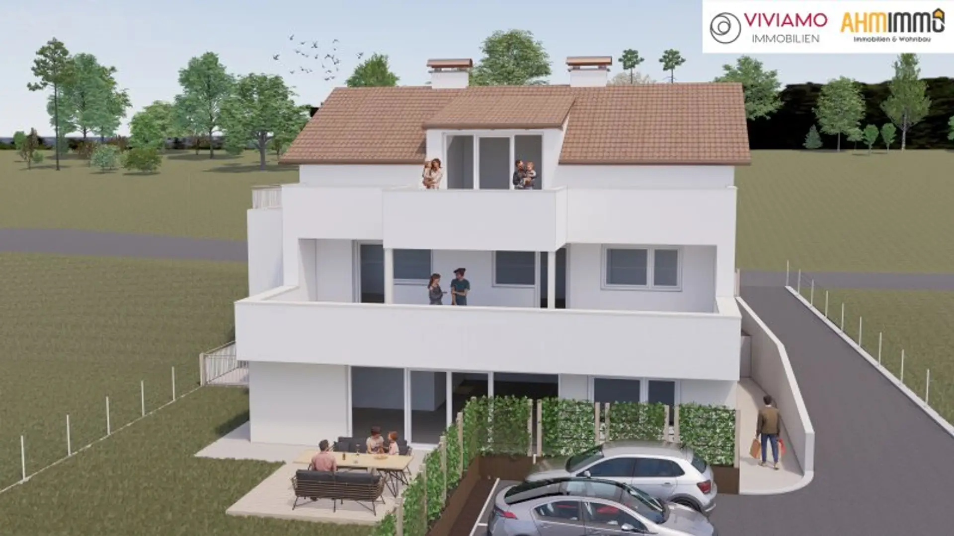 ca. 82,61 m² Wohnnutzfläche (3 Zimmer) / ca. 24,93 m² SÜD-Terrasse und ca. 16,86 m² WEST-Terrasse / 2 KFZ-Stellplätze