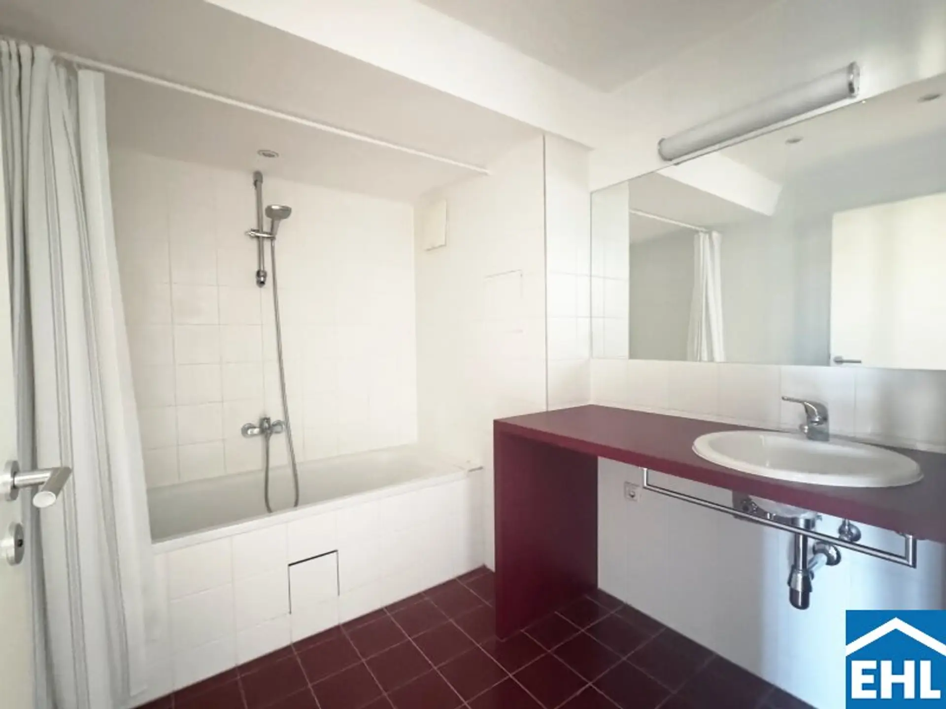 * Badezimmer mit Wanne und Waschmaschinenanschluss