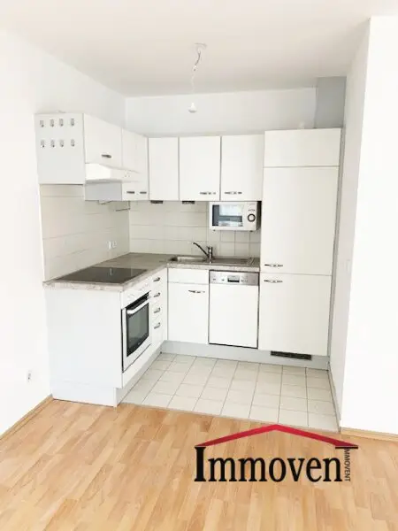 Die in den Wohnraum integrierte Küche verfügt über ein Ceran-Kochfeld und Backofen, sowie einen Geschirrspüler und Kühlschrank mit Gefrierfach. Die Räumlichkeiten sind im Wohnbereich mit schönen Parketten und im Sanitärbereich mit zeitlosen Fliesen versehen.