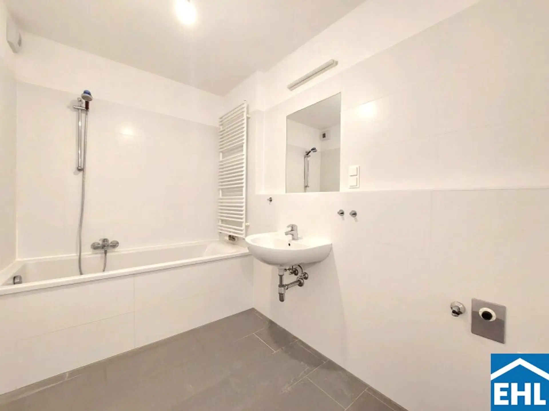 Badezimmer mit Wanne und Waschmaschinenanschluss