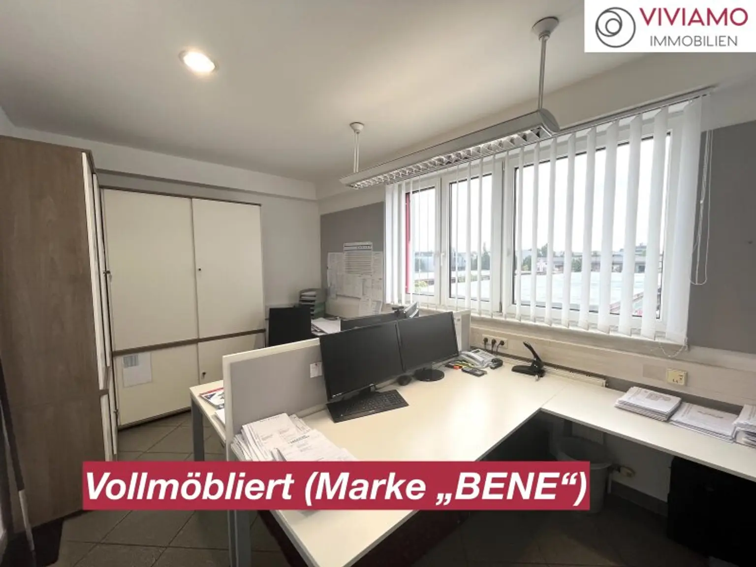 Das 3-Raum-Büro mit rund 56 m2 wird vollmöbliert übergeben und besteht aus: