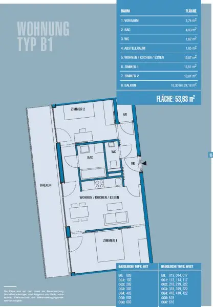 Die Wohnung befindet sich im 3. Obergeschoss eines gepflegten Mehrfamilienhauses und überzeugt durch ihre durchdachte Raumaufteilung auf einer Fläche von 53,63 m². Der 18,30 m² große westseitige Balkon lädt dazu ein, die frische Luft und den Ausblick auf die Umgebung zu genießen – perfekt für entspannte Stunden im Freien.