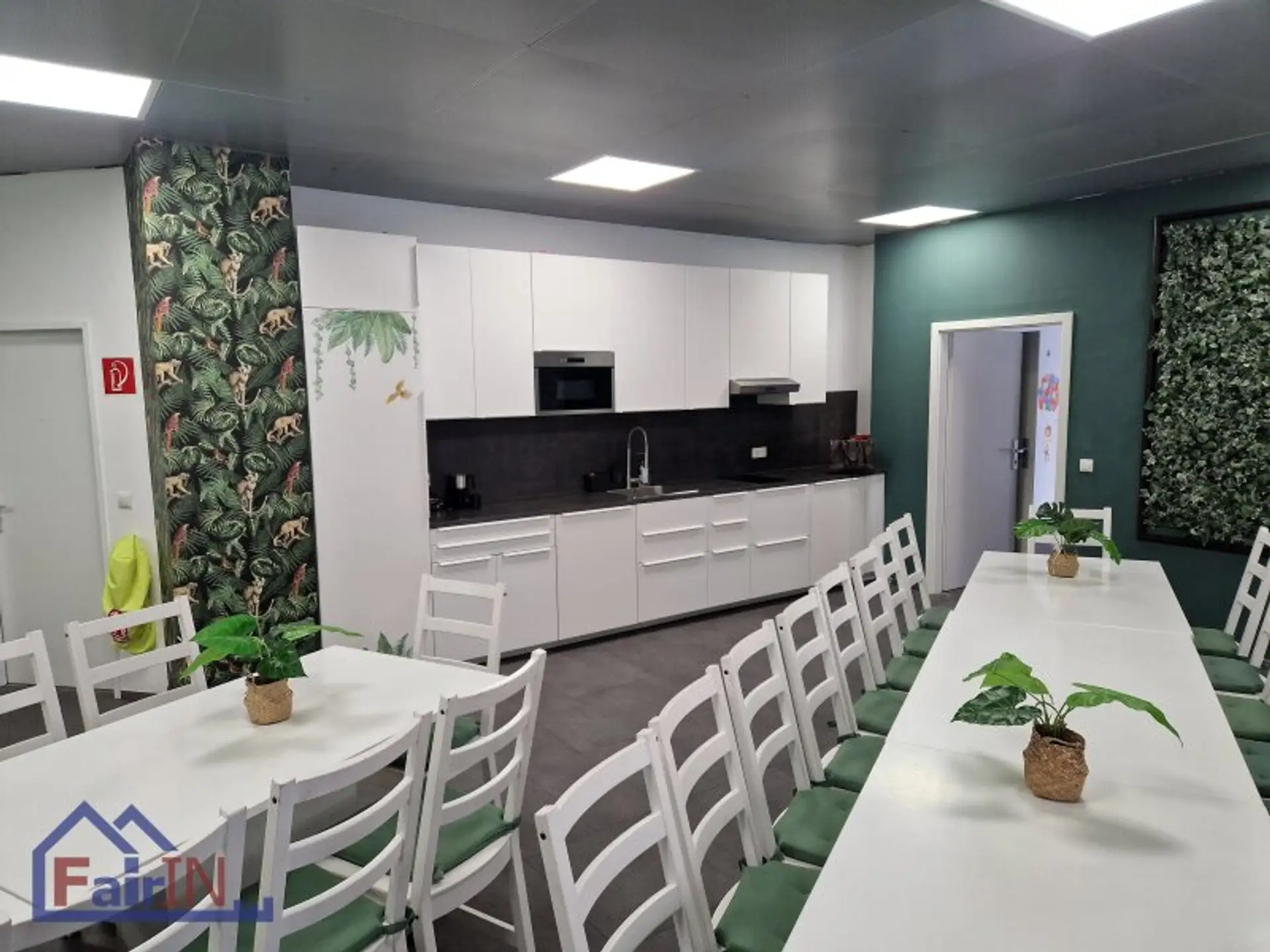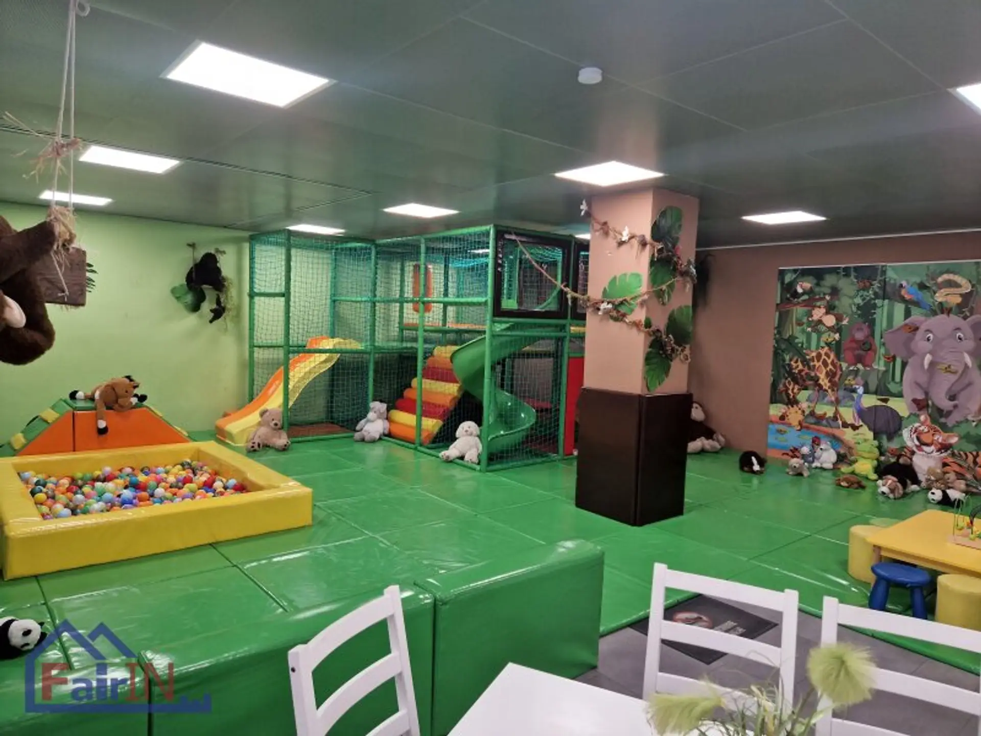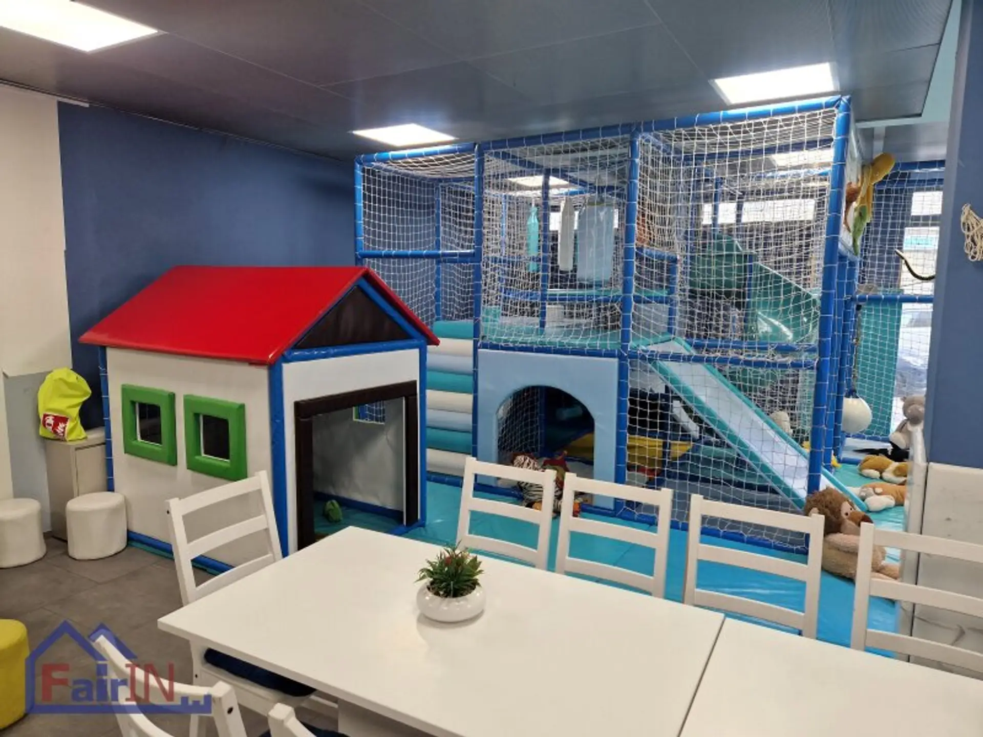 Im oberen Stockwerk befinden sich zwei stilvolle Säle, jeweils mit eigener Küche und einem separaten Spielbereich für Kinder – ideal für Feiern und Veranstaltungen. Das Grüne Zimmer hat eine Fläche von 115 m², während das Blaue Zimmer 127 m² groß ist.