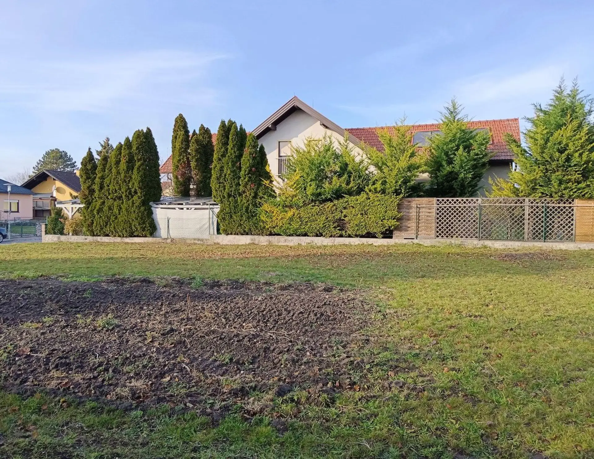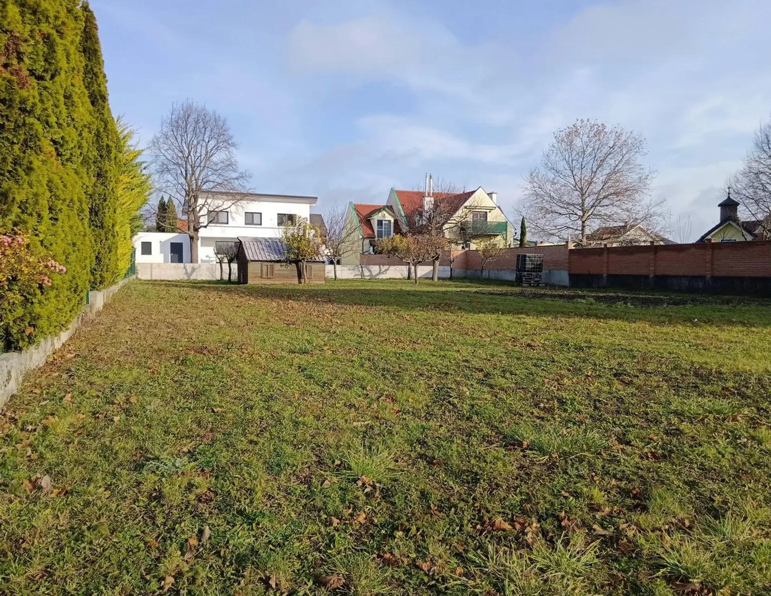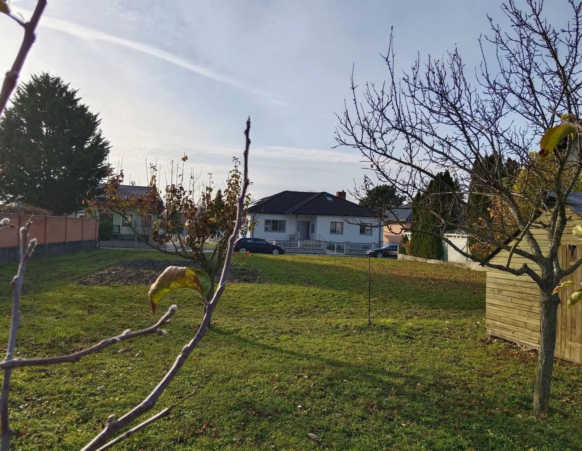 Details zum Grundstück: Abmessungen ca. 22 x 37 m Bebauungsdichte 50 % erlaubte Gebäudehöhe 6,50 erlaubte Bauweise: offen bzw. halboffen Grundstück ist voll aufgeschlossen, Kanalanschluss am Grund Gartenhütte sowie Obs…