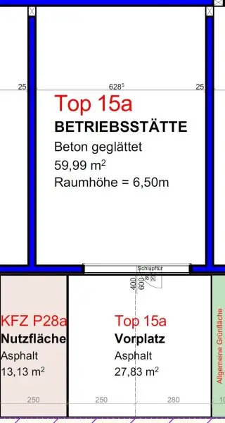 * Betriebshallen und Gewerbeflächen mit 6,5 Meter Höhe