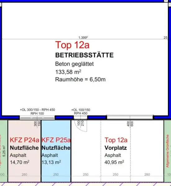* Betriebshallen und Gewerbeflächen mit 6,5 Meter Höhe
