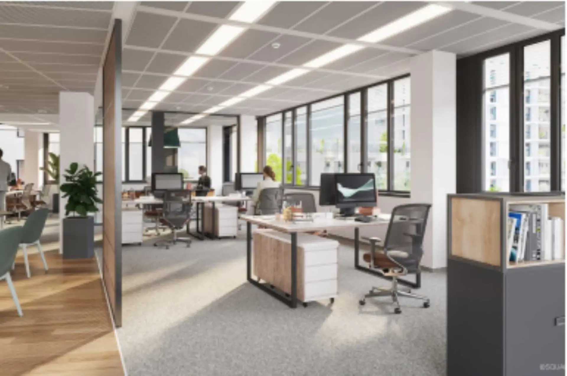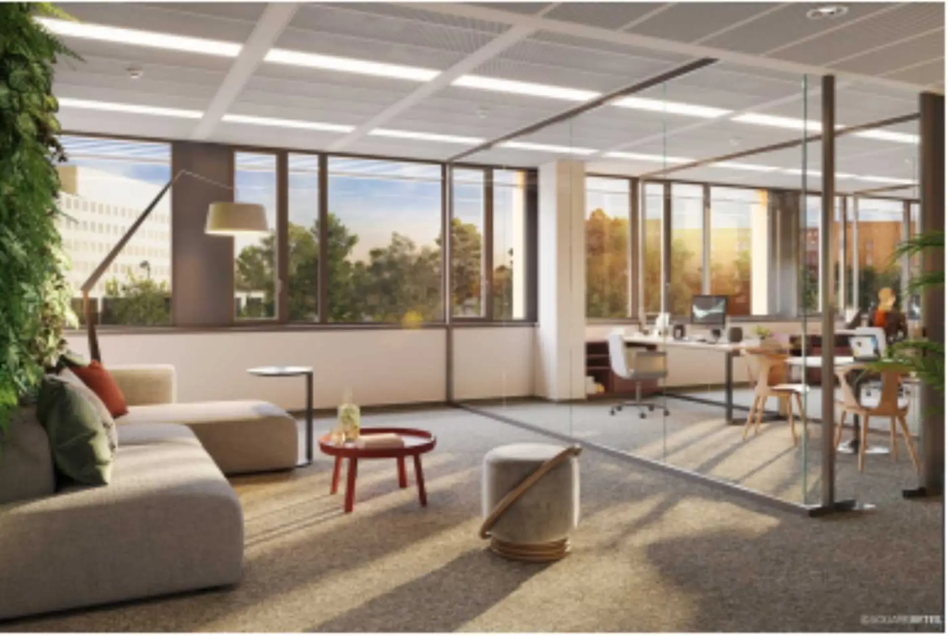 Die Flächen bieten höchste Produktivität, maximale Flexibilität und effiziente Nutzung. Individuelle Raumkonzepte, intelligente Sensorik, umweltfreundliche Energieversorgung sowie hochwertige Ausstattung schaffen ein inspirierendes Umfeld für kreative Höchstleistungen. Terrassen zum grünen Innenhof sorgen zudem für erholsame Pausen und fördern den sozialen Austausch an der frischen Luft.