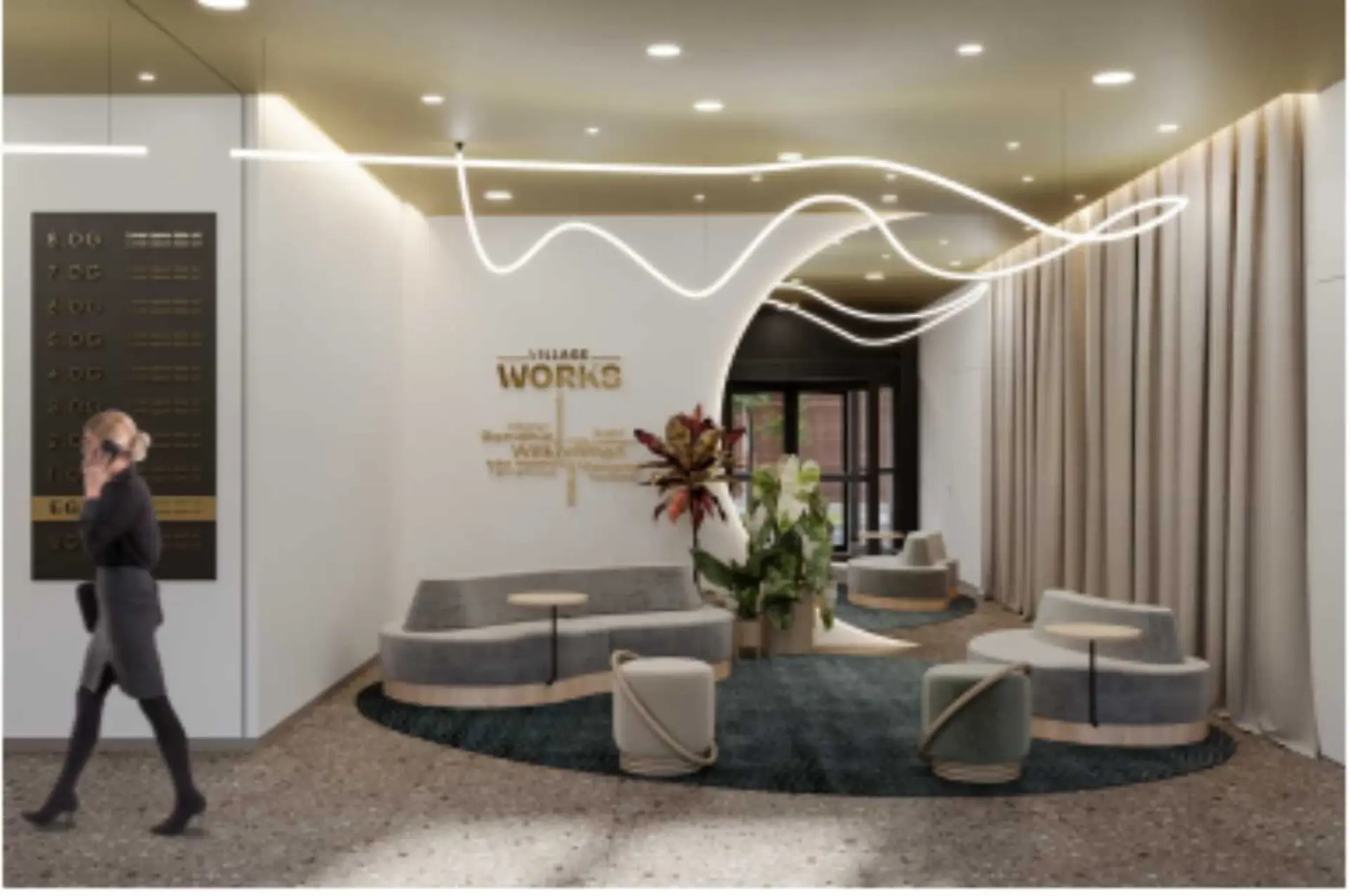 Rund um das Bürogebäude im Village Works entwickelt sich ein lebendiges Umfeld mit neuen Geschäften, Restaurants und Serviceangeboten. Das entstehende Quartier schafft ein attraktives Umfeld für Mitarbeiter, Kunden und Besucher. Zusätzlich zum Bürogebaude entstehen im Village sowohl Miet- als auch Eigentumswohnungen.