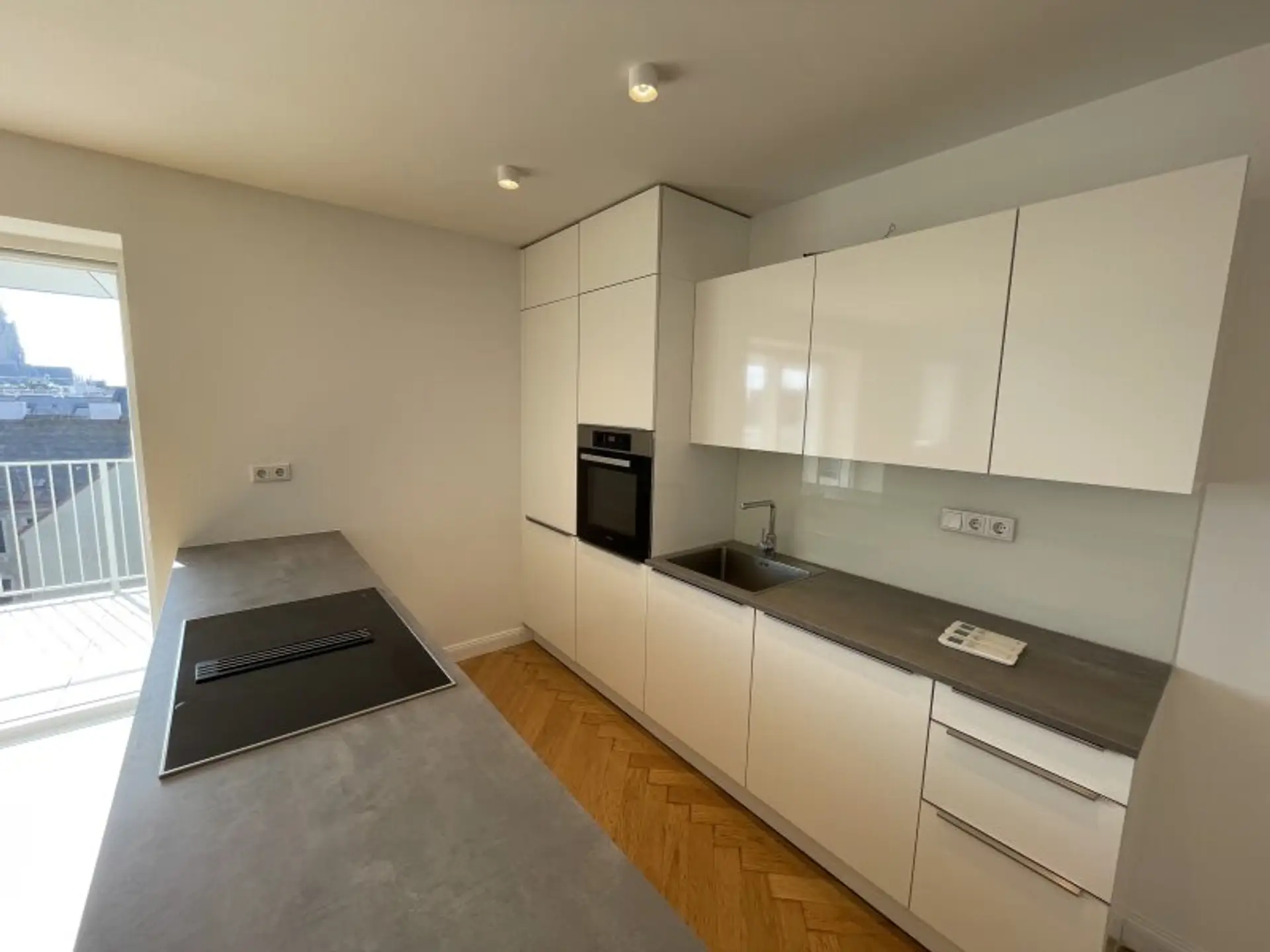 Diese schöne Dachterrassen-Wohnung mit 3 großzügigen Zimmern wurde 2021 mit hochwertigen Materialien erbaut und liegt im Dachgeschoß eines schön sanierten klassischen Altbauhauses am Beginn der ruhigen Oberen Weissgerberstraße (Nähe Urania).