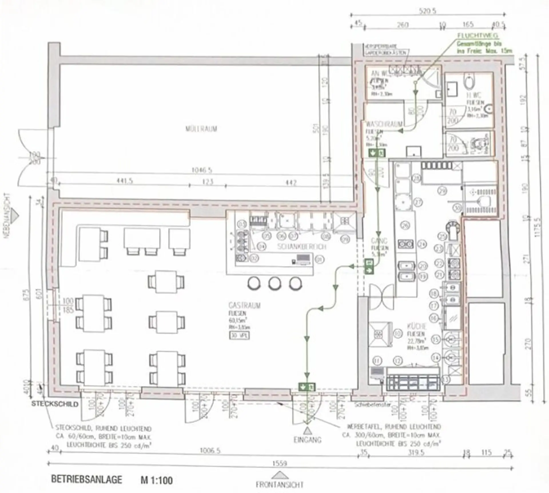 Für angenehme Atmosphäre und Frischluft sorgt die mechanische Be- und Entlüftung, die auch an heißen Tagen für ein angenehmes Raumklima sorgt. Die Lüftung muss noch etwas modifiziert werden um das Lokal als Restaurant in Betrieb nehmen zu dürfen, bei anderweitiger Verwendung des Geschäftslokals entfällt dies.