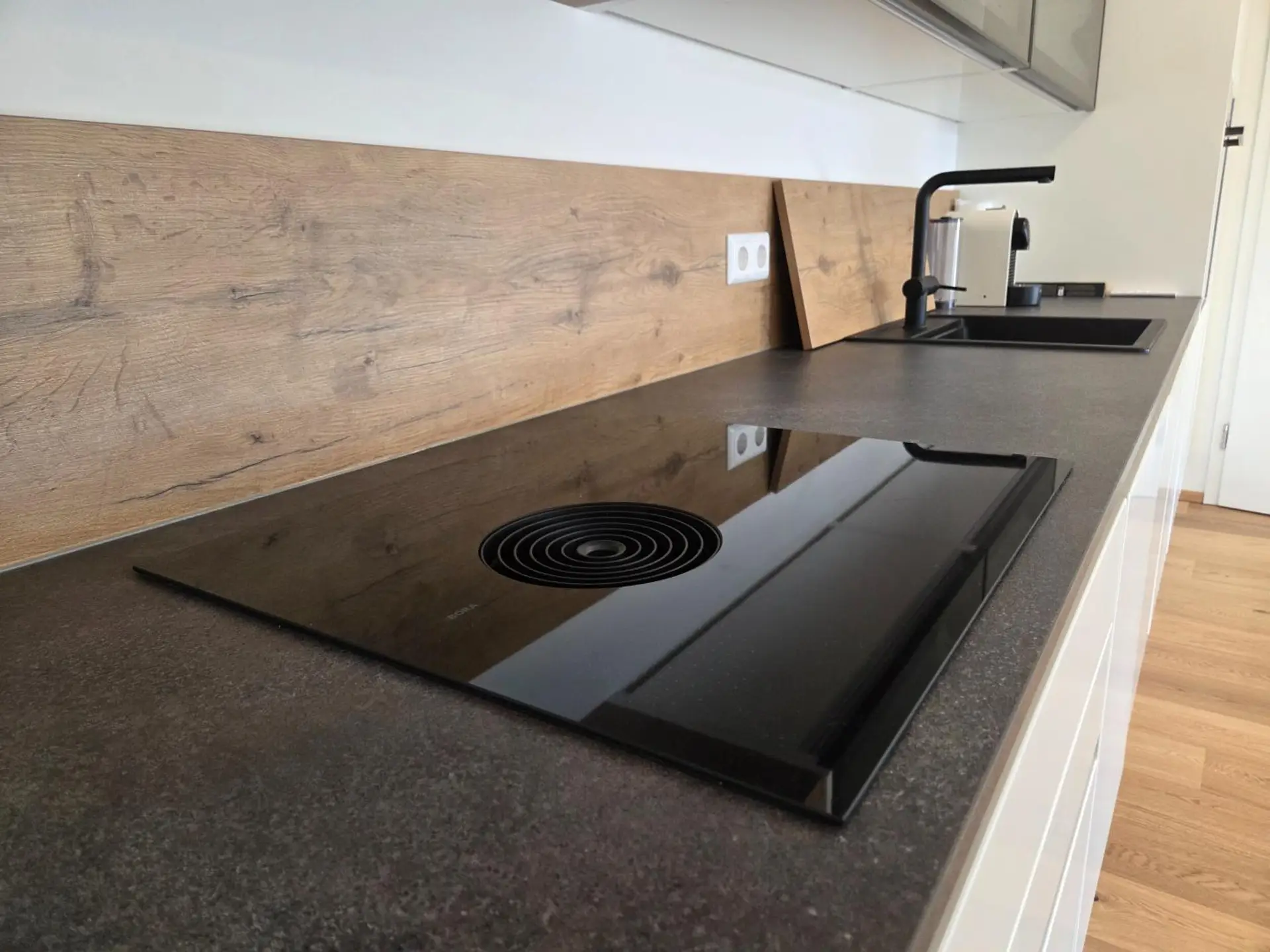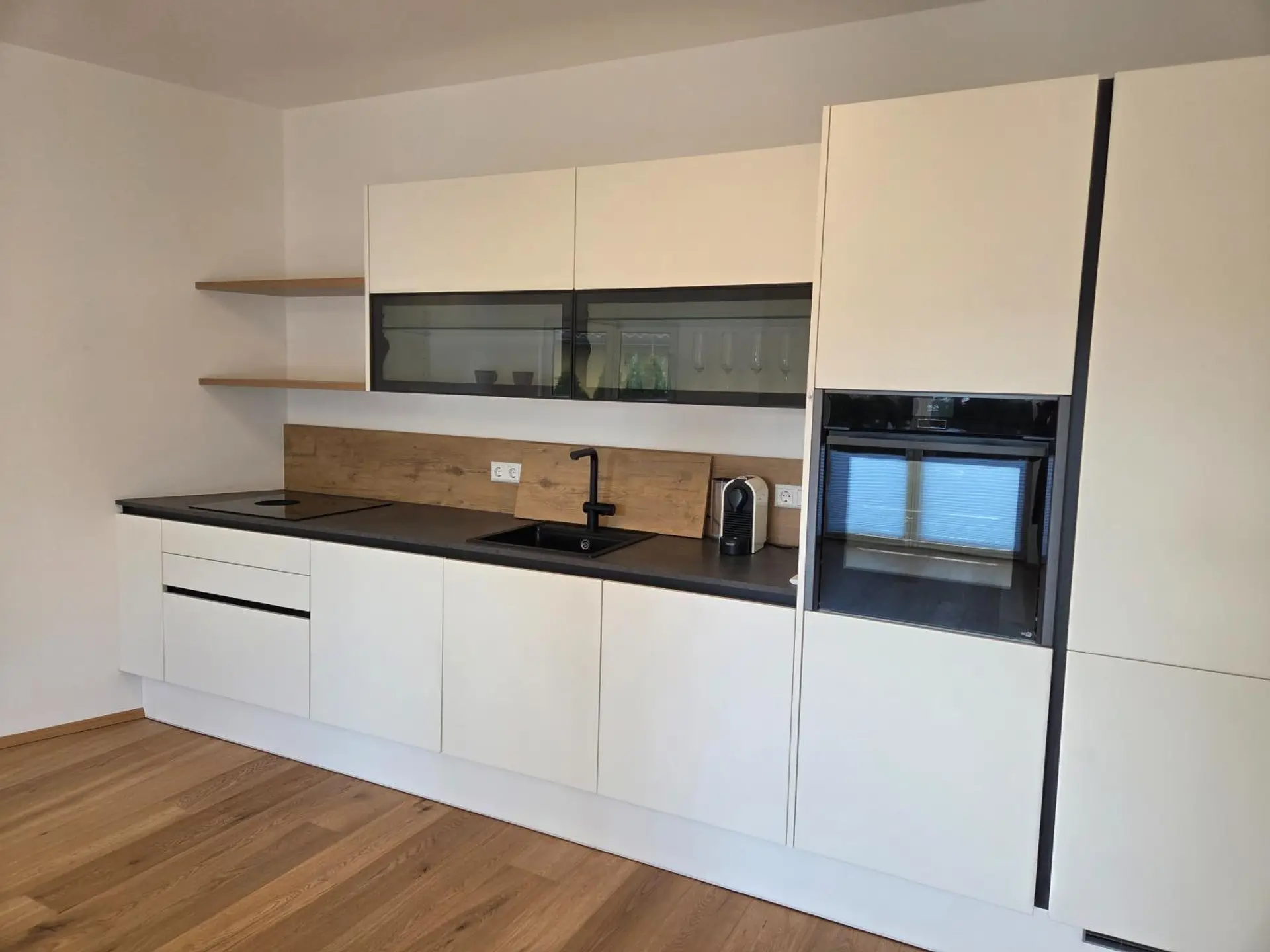 Der durchdachte Grundriss bietet ein modernes Wohnambiente mit einem hellen Wohn- und Essbereich sowie einem gemütlichen Schlafzimmer. Besonders hervorzuheben ist die hochwertige Einbauküche, die keine Wünsche offenlässt und perfekt in den Wohnraum integriert ist.