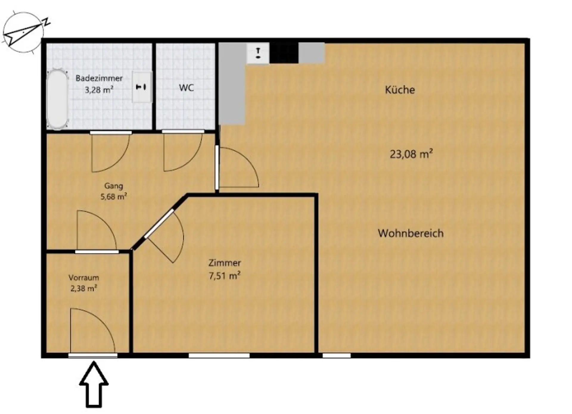 * Wohnfläche: 43,49 m² (2 Zimmer)