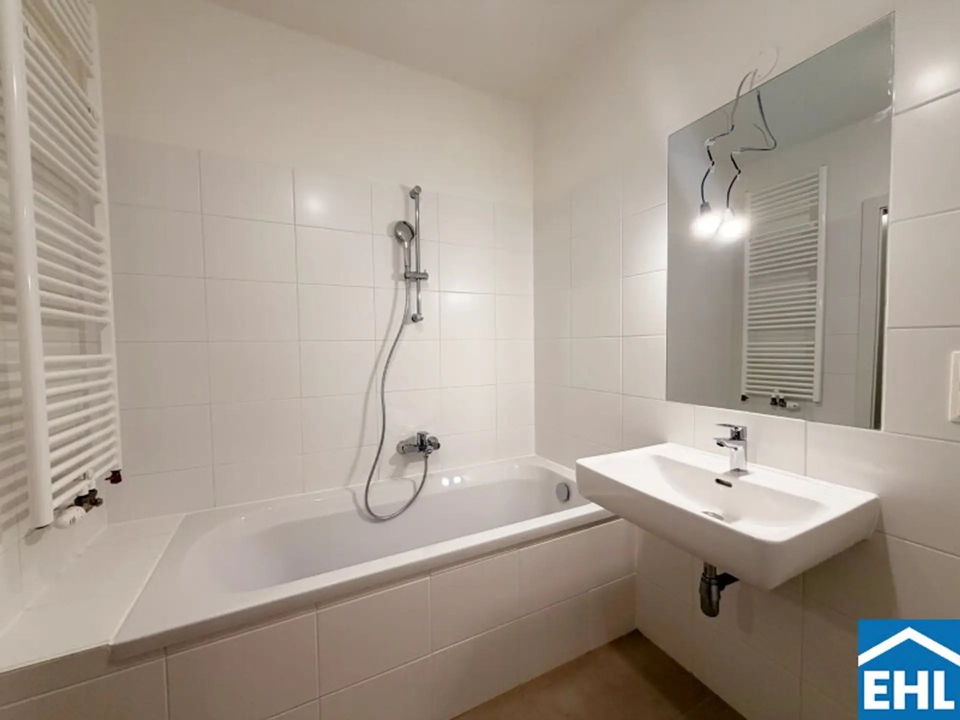 * Badezimmer mit Wanne und Waschmaschinenanschluss