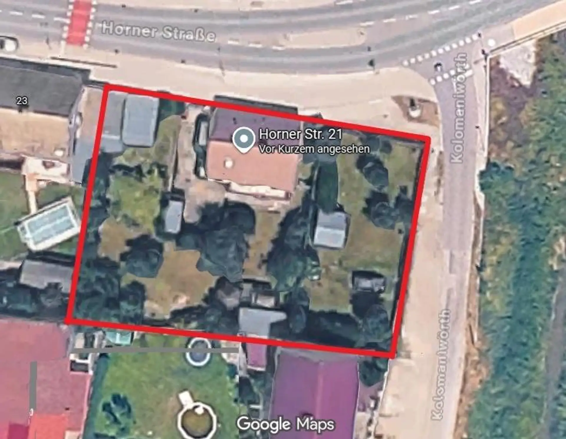 Die Liegenschaft befindet sich in der Horner Straße 21 und bietet eine ausgezeichnete Kombination aus urbaner Nähe und naturnahem Umfeld.