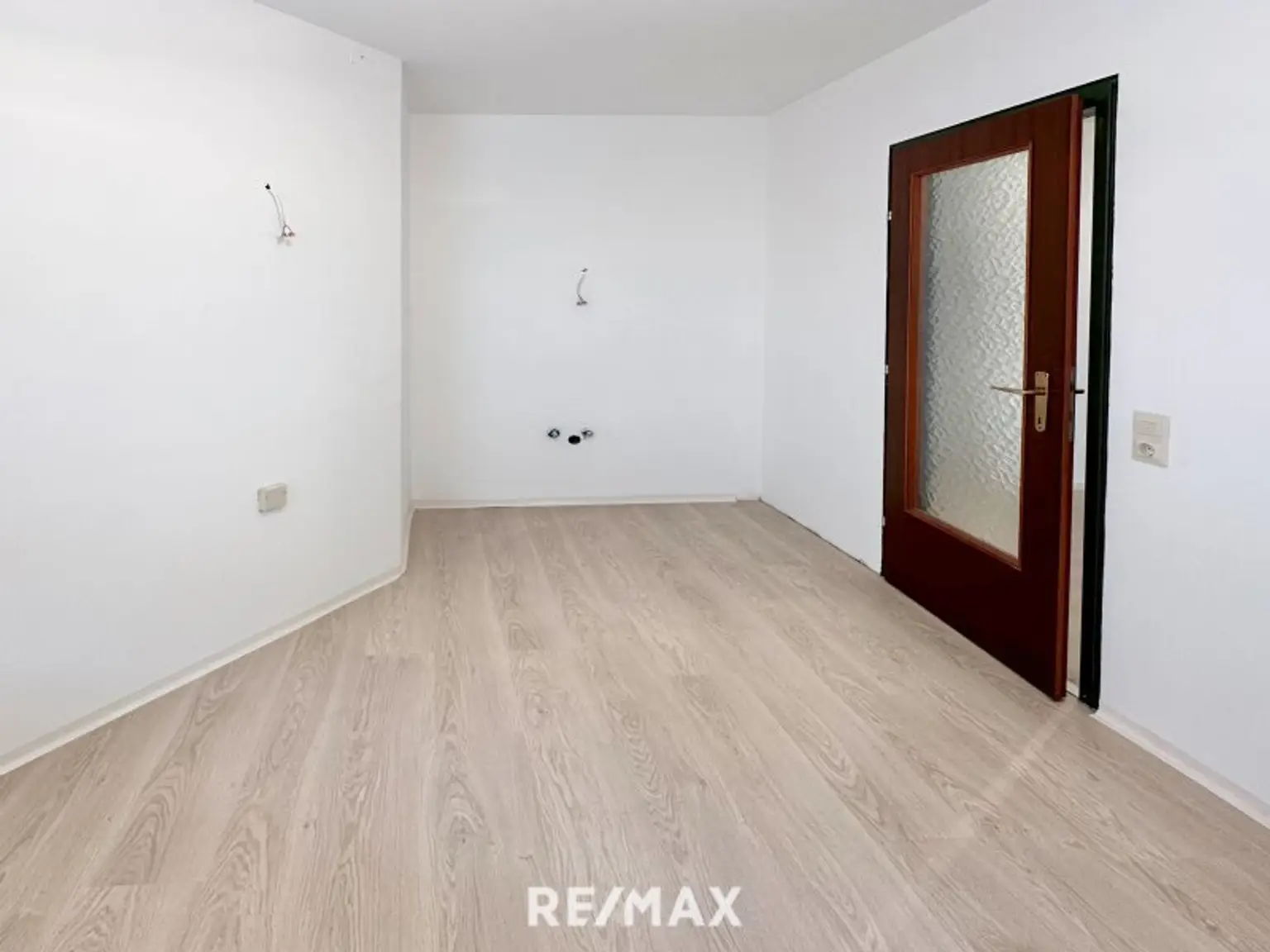 Geradeaus eröffnen sich 3 helle Wohnräume und ein separater Raum, in dem Sie nach Ihrem Geschmack Ihre Küche verwirklichen können.