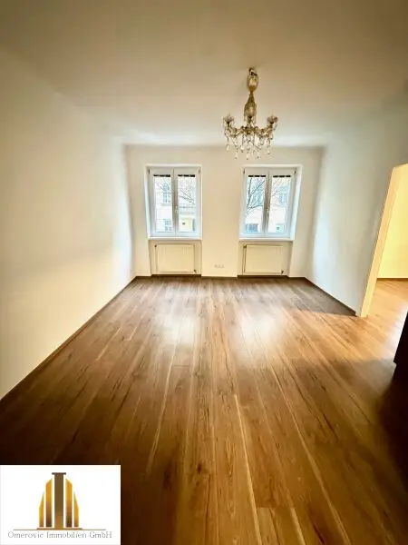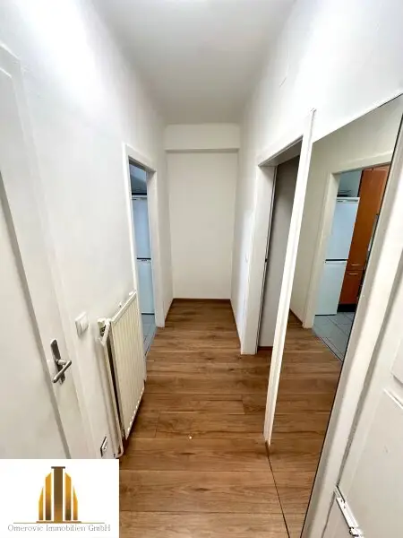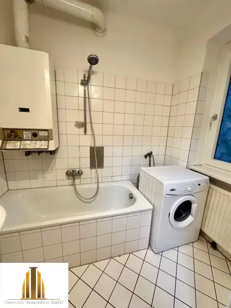 Sie bietet auf 54,42m2 ein Vorzimmer, Küche, Badezimmer mit Badewanne, WC und zwei Zimmer mit je ca. 18,5m2. Beheizt wird die Wohnung mittels Gasetagenheizung.