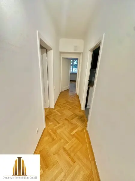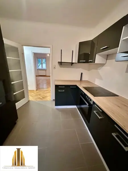 Sie bietet auf 79,82m2 ein Vorzimmer, Küche, Badezimmer mit Badewanne, WC und drei Zimmer mit je ca. 19m2. Beheizt wird die Wohnung mittels Gasetagenheizung.