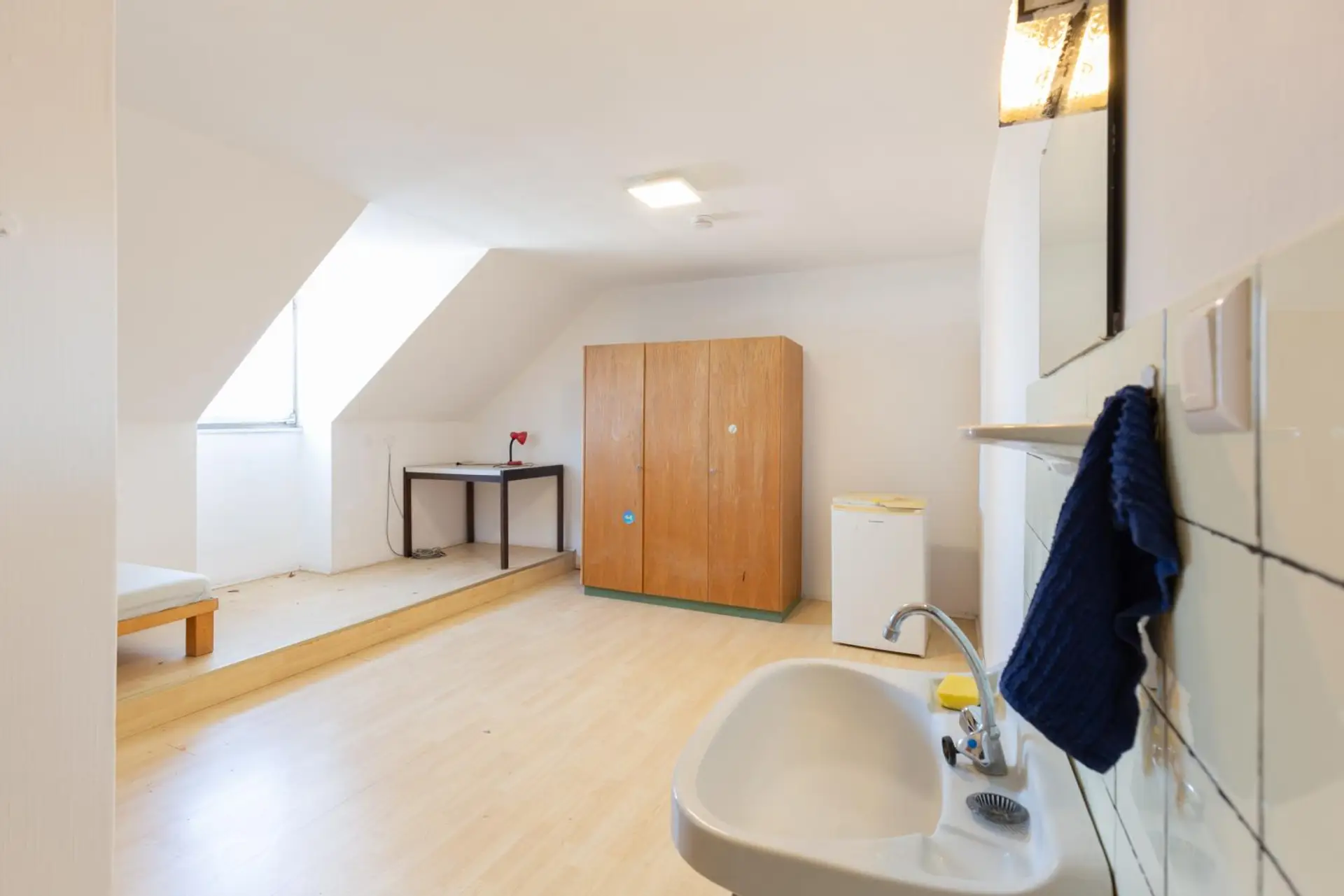 Aktuell wird die Wohnung als Studenten-WG mit sieben Zimmern genutzt. Eine Gemeinschaftsküche sowie zwei Duschen und zwei separate WCs sorgen für eine funktionale Aufteilung im Alltag. Zwei Zimmer sind derzeit noch vermietet. In einem Zimmer ist bereits direkt eine Dusche und ein WC eingebaut.