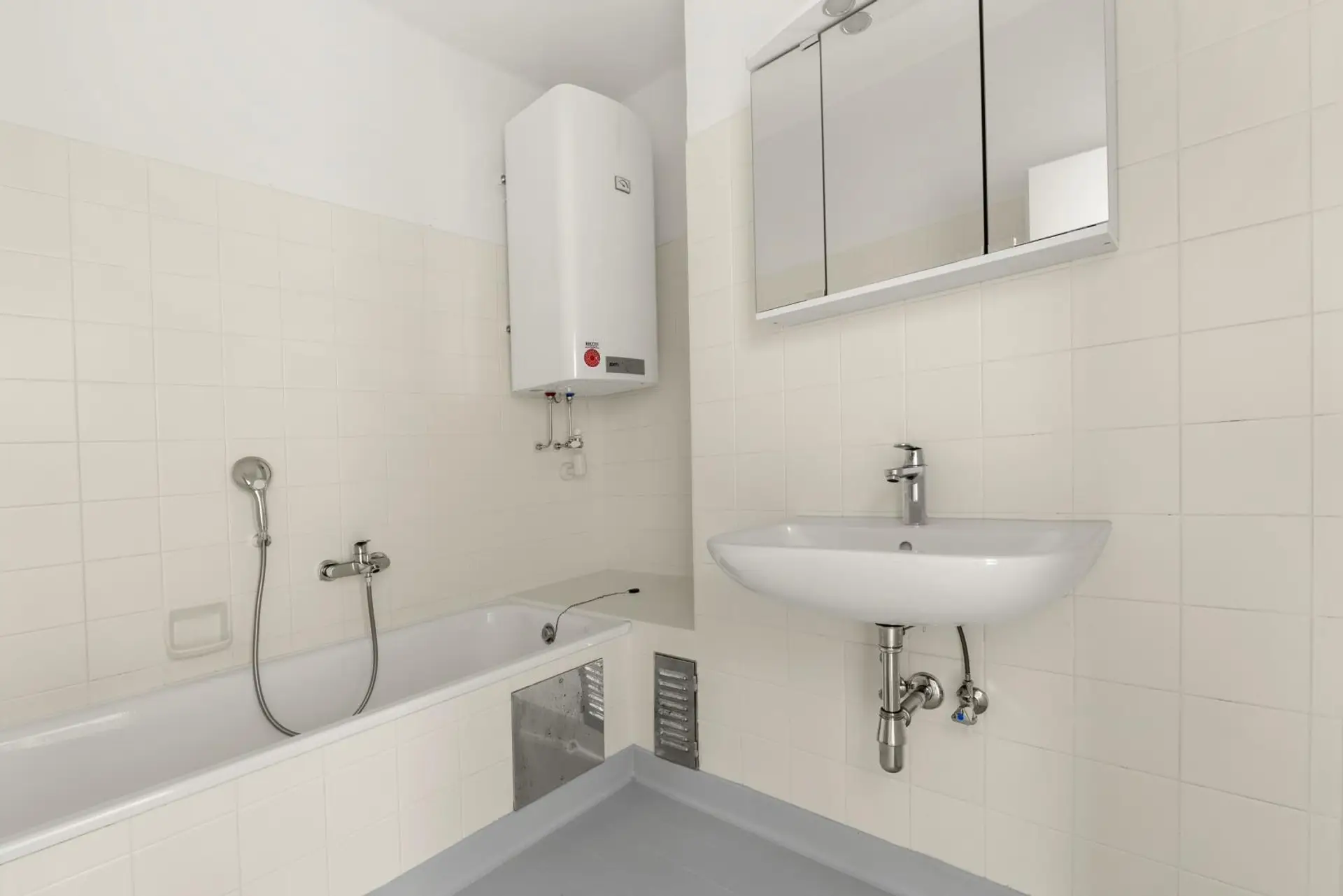 Besonders hervorzuheben ist die ca. 3,10 m² große Loggia, die von einem Zimmer aus begehbar ist. Die Böden in den Wohnräumen sind mit Laminat, im Badezimmer und WC mit Fliesen gestaltet. Beheizt wird die Immobilie mittels Fernwärme. Die Heizkosten sind nicht in den angegebenen Betriebskosten enthalten.