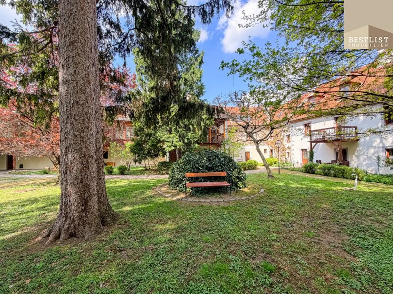 Über den traumhaften Innenhof gelangt man zum Stiegenhaus und weiter in den 2. Stock zur Wohnung.
