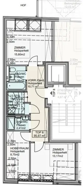Die Wohnung liegt in der obersten Etage (Dachgeschoss 1 und 2) und ist über einen Lift bequem erreichbar.