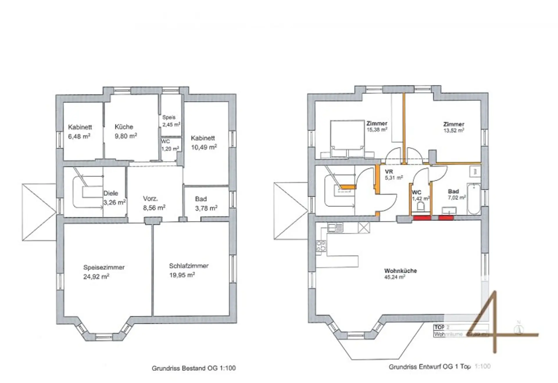 Die Gesamtwohnfläche von ca. 175,26 m² erstreckt sich über zwei Geschosse. Derzeit befindet sich pro Geschoss eine Wohneinheit, verbunden sind die Wohneinheiten über eine innenliegende Treppe. Eine Studie über den Umbau in 4 Wohneinheiten inkl. Dachgeschoss-Ausbau liegt vor!