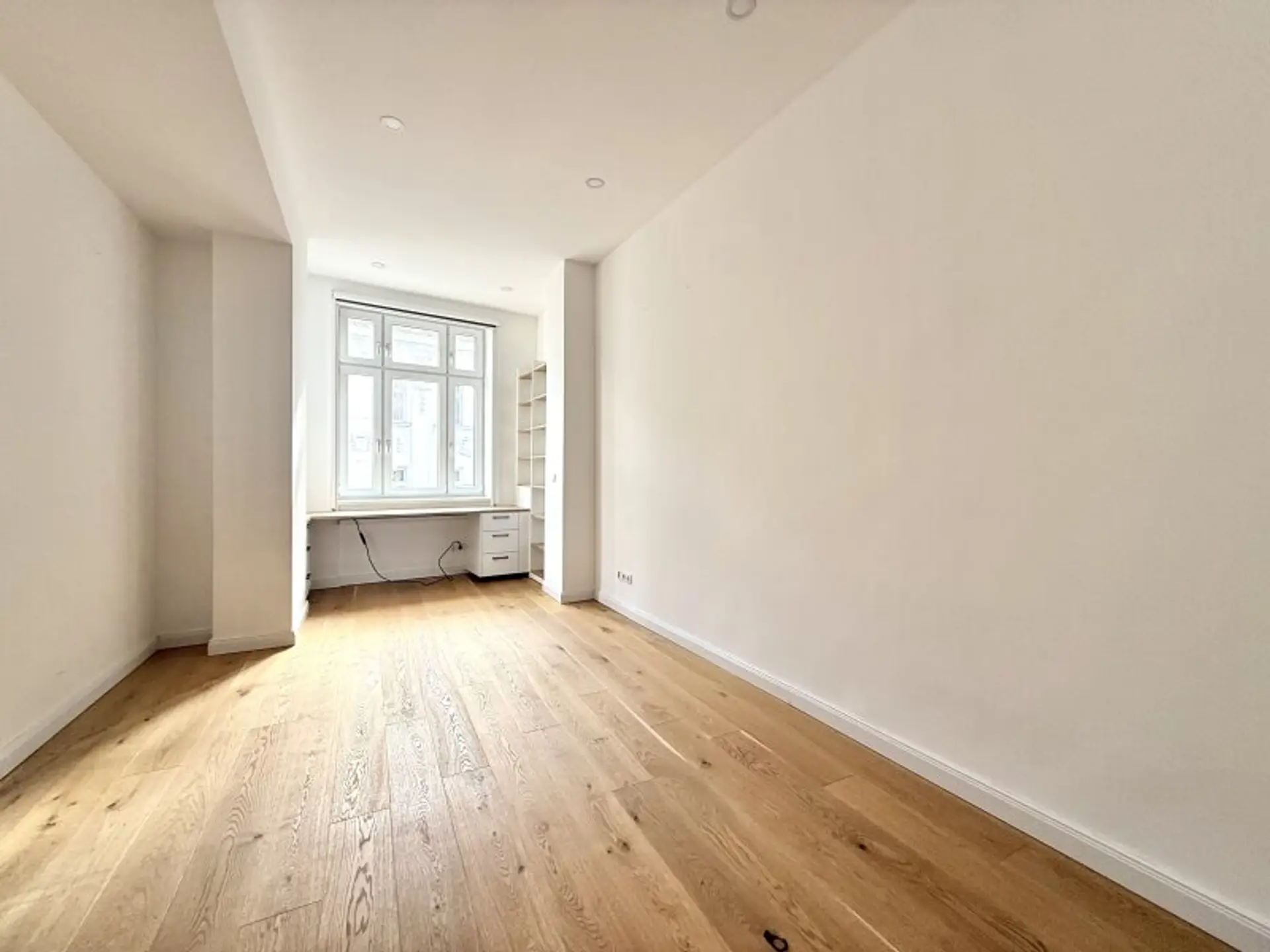Das elegante Badezimmer verfügt über zwei große Fenster, eine Badewanne sowie eine Dusche und bietet höchsten Komfort. Zusätzlichen Stauraum bietet der praktische Abstellraum, der mit einem Waschmaschinen-Anschluss ausgestattet ist. Ein wunderschöner, sonniger Erker – aktuell als Büro gestaltet – verleiht der Wohnung zusätzliche Funktionalität und einen charmanten Charakter.