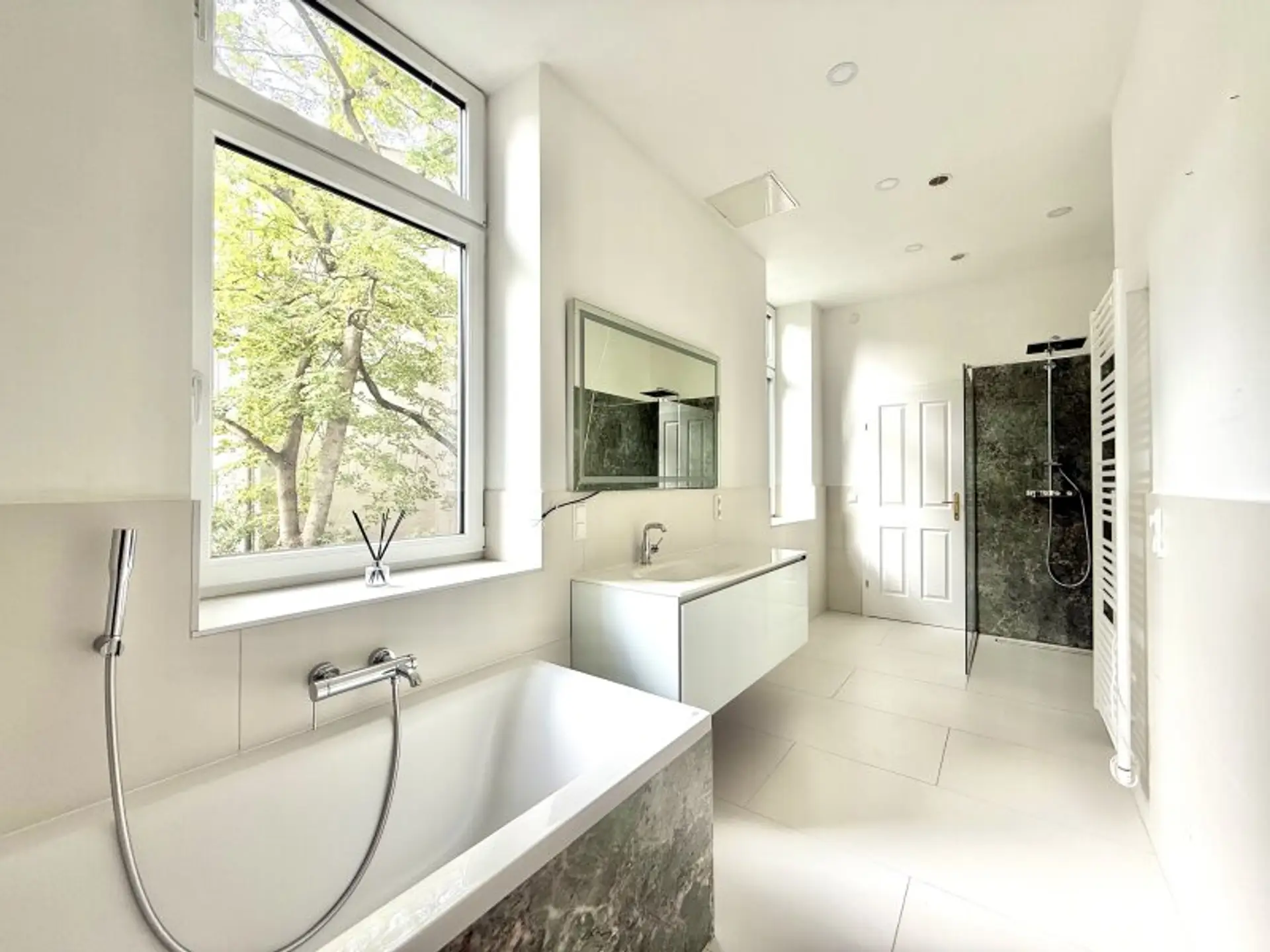 Großes Badezimmer mit Wanne, Dusche & viel Tageslicht