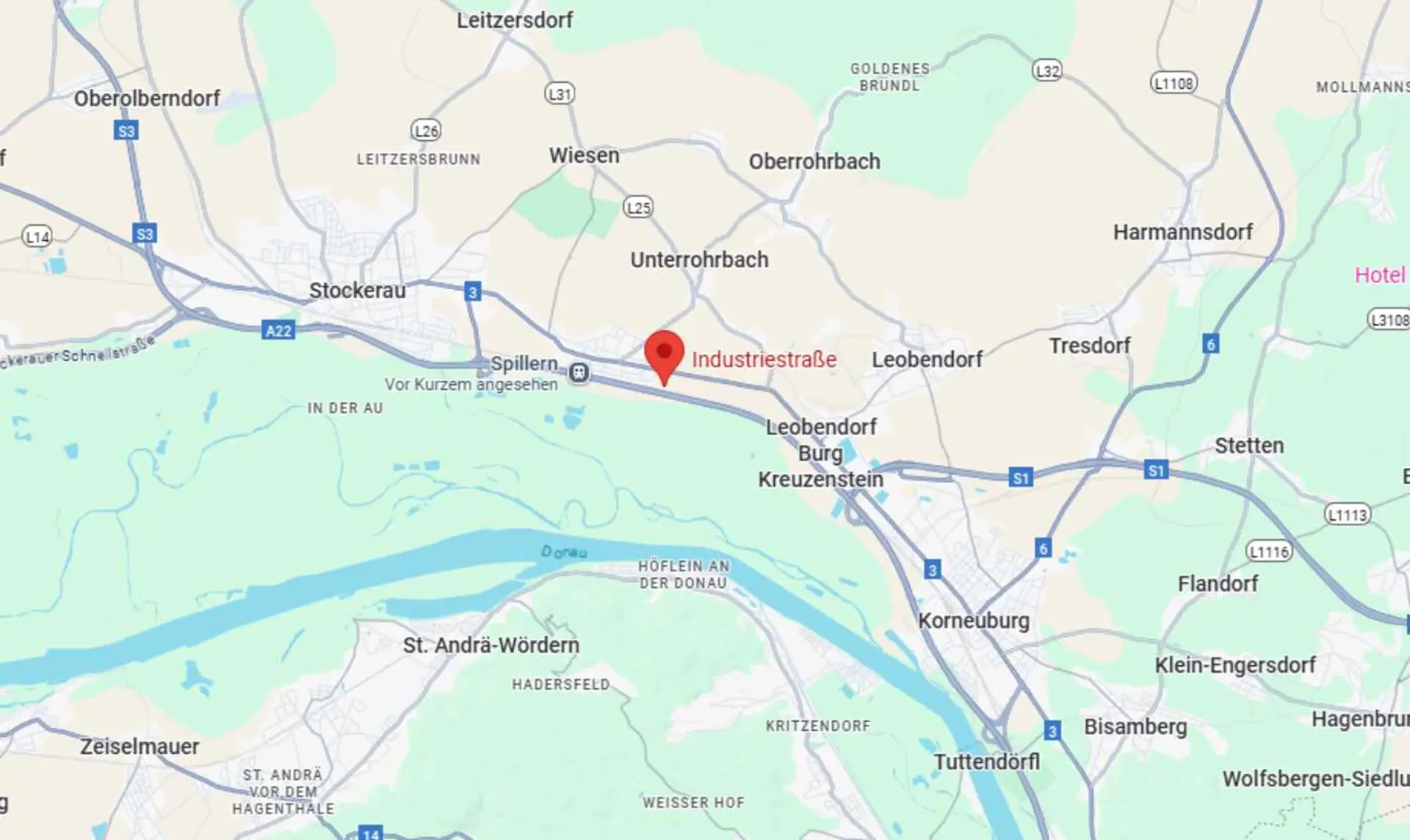 Die Lagerhalle befindet sich in einem gut erreichbaren Gewerbegebiet im Bezirk Korneuburg. Die Lage bietet eine schnelle Anbindung an die S3 sowie an die A22 (Donauuferautobahn) und ermöglicht damit eine effiziente Erreichbarkeit von Wien und dem Umland. Das Umfeld ist von etablierten Gewerbe- und Industriebetrieben geprägt und bietet eine gute Infrastruktur für Logistik- und Produktionsunternehmen.