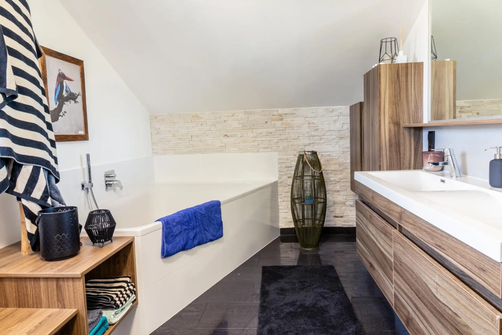 Jede der drei Wohneinheiten verfügt über eine eigene Küche, ein Badezimmer sowie ein WC, was eine unabhängige Nutzung ermöglicht. Ob zur Eigennutzung mit zusätzlicher Vermietung, als reines Anlageobjekt oder für mehrere Generationen – die Struktur des Hauses eröffnet vielfältige Möglichkeiten. Die Immobilie wird teilweise möbliert übergeben und ist unterkellert, wodurch zusätzliche Nutz- und Lagerflächen zur Verfügung stehen.