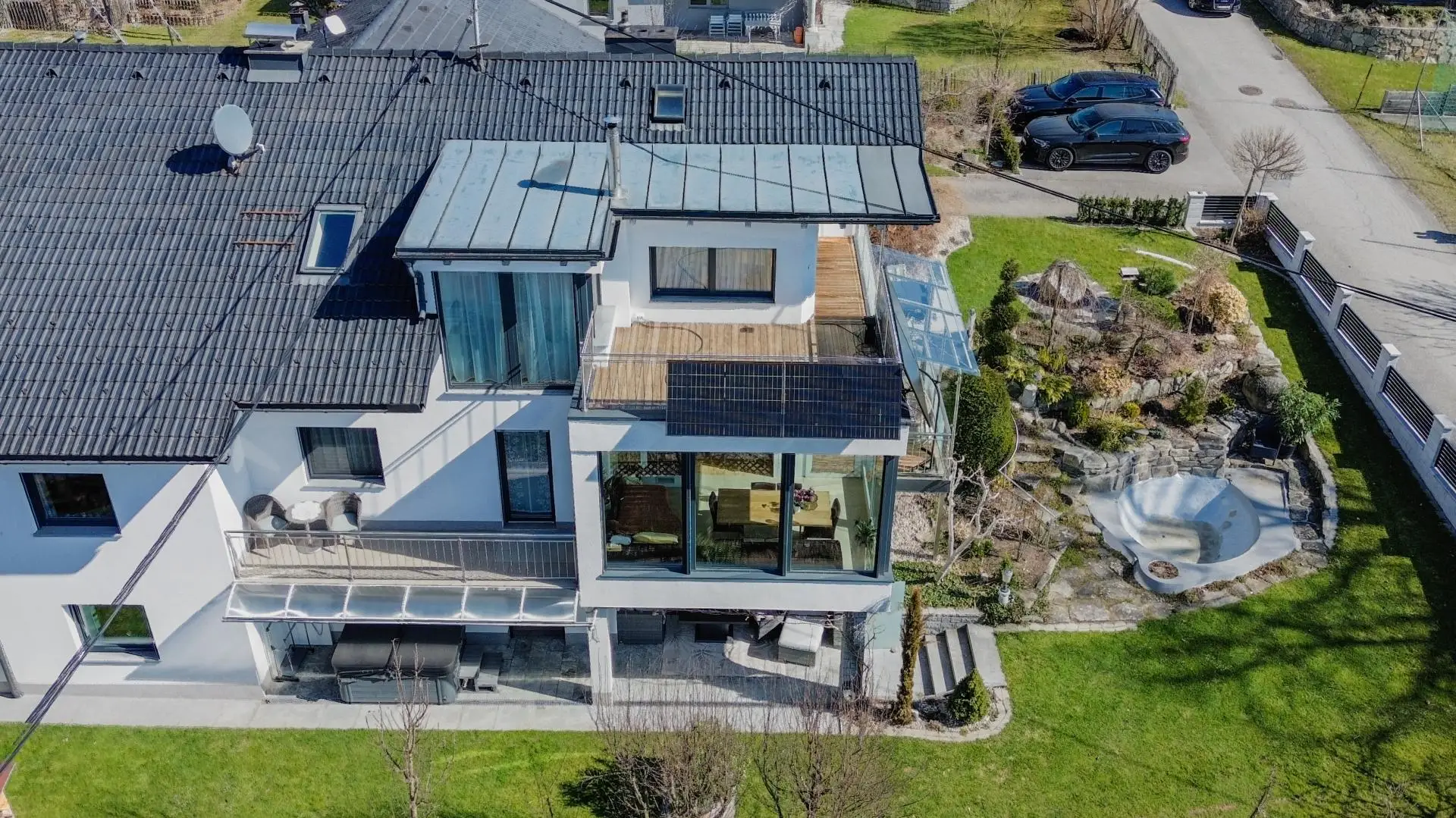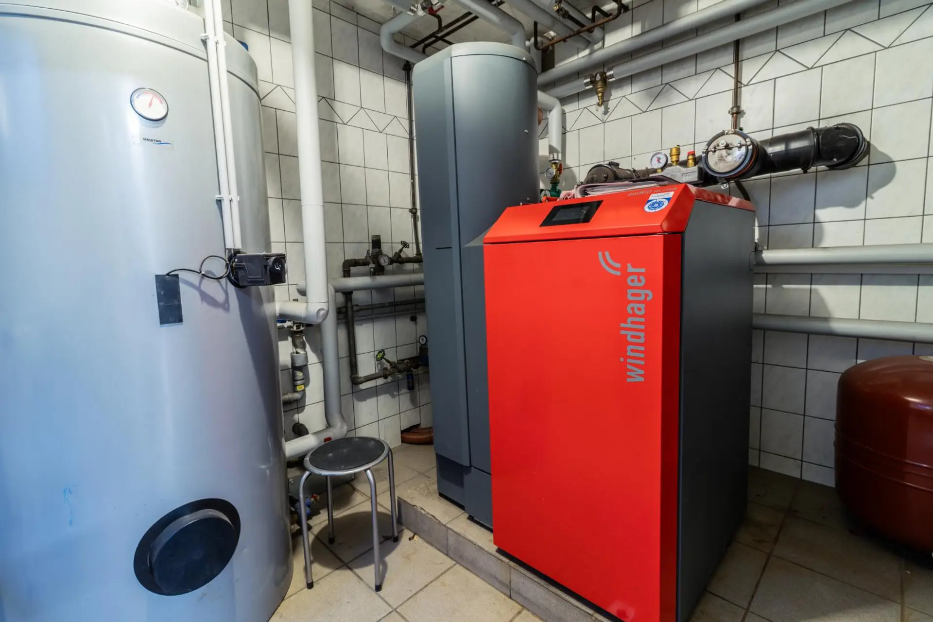 Beheizt wird das Gebäude mittels einer Pelletsheizung, die eine moderne und nachhaltige Wärmeversorgung gewährleistet. Zwei Garagen bieten ausreichend Platz für Fahrzeuge und zusätzlichen Stauraum. Weitere Abstellplätze befinden sich am Vorplatz der Liegenschaft.