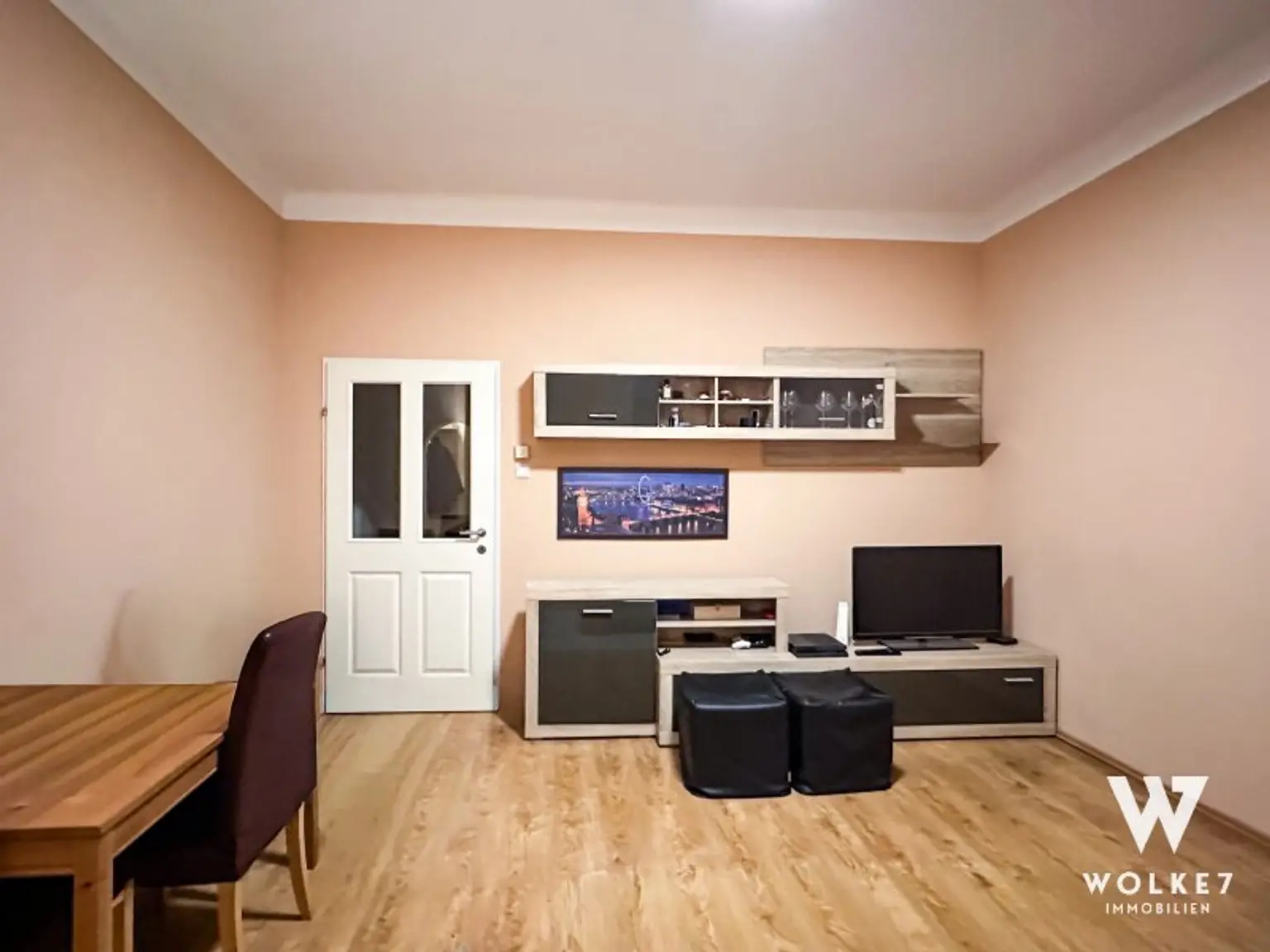 * Böden: Echtholzparkett in den Wohnräumen, hochwertiges Laminat in einem Teil des Vorzimmers, Fliesen im Bad