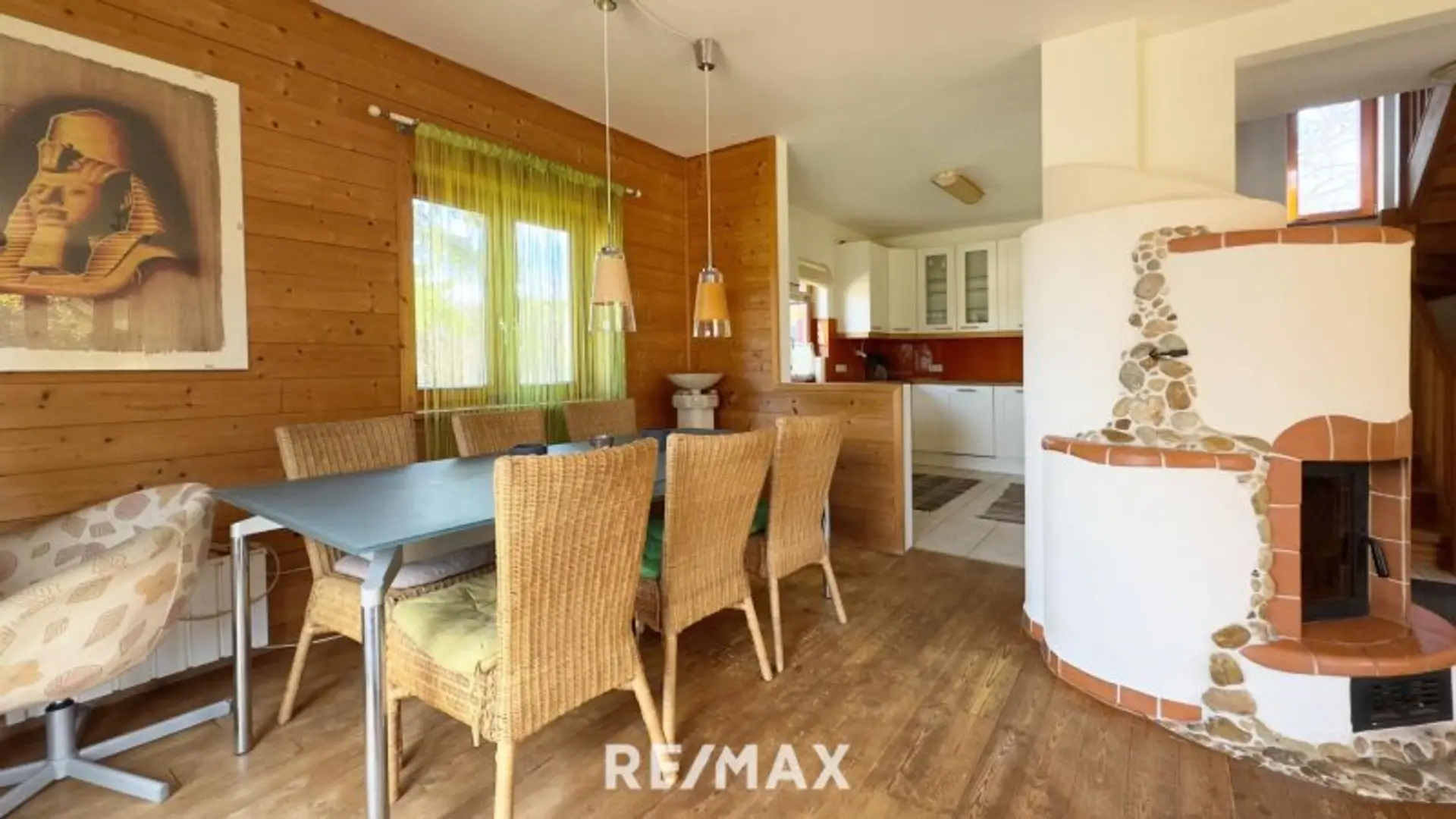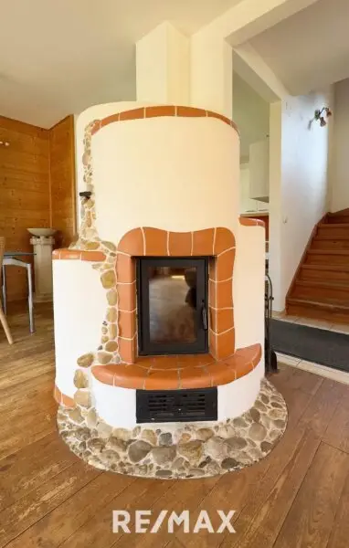 * Kaminofen als zusätzliche Heizquelle mit Auslässen im Obergeschoss