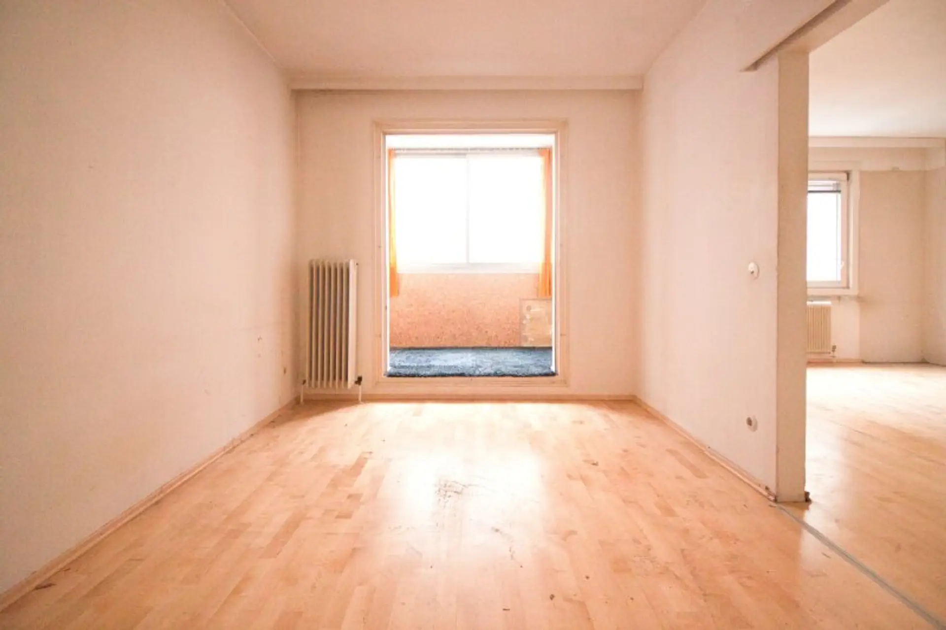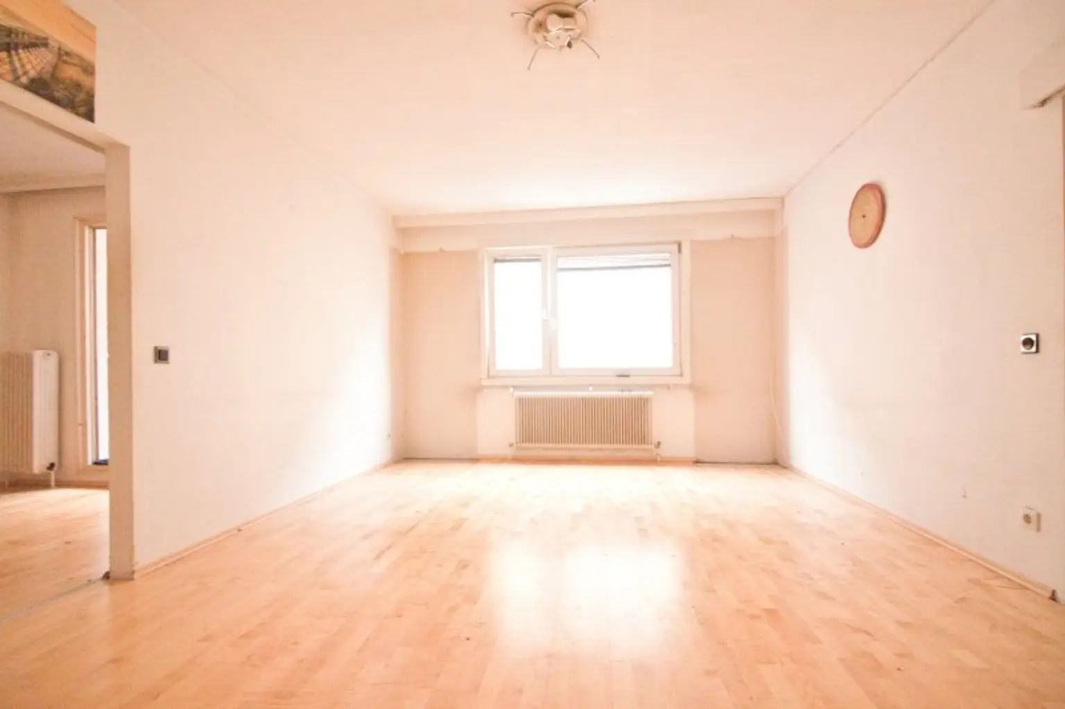 Besonders praktisch: die aktuelle Küche und das kleine Zimmer können auf Wunsch zu einem ca. 15 m² großen Schlafzimmer verbunden werden – im Wohnzimmer könnte man dann eine offene Küche realisieren. So passt sich die Wohnung flexibel Ihren Lebensgewohnheiten und -bedürfnissen an.