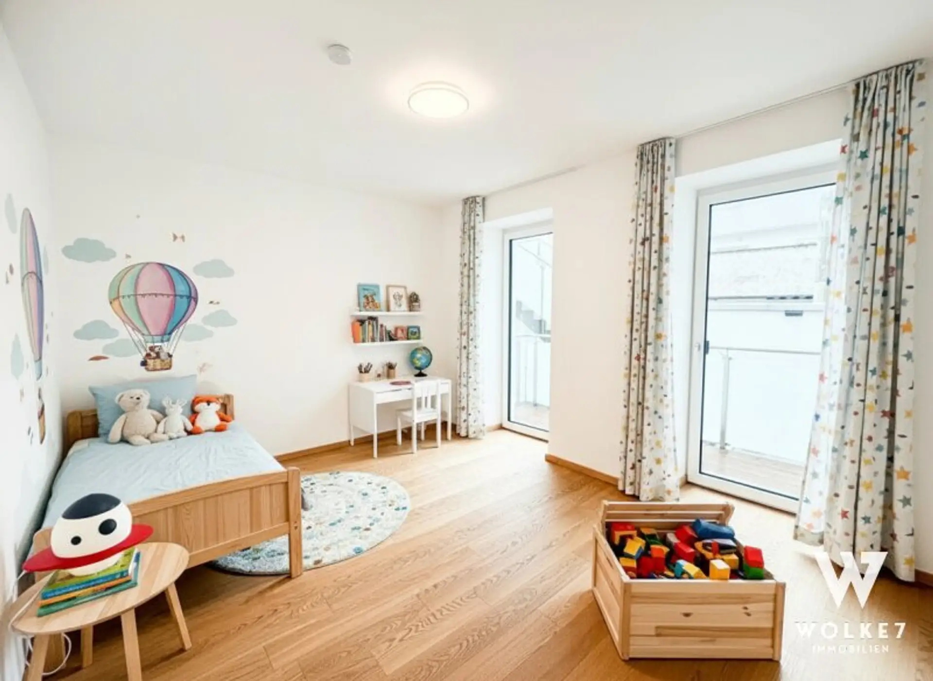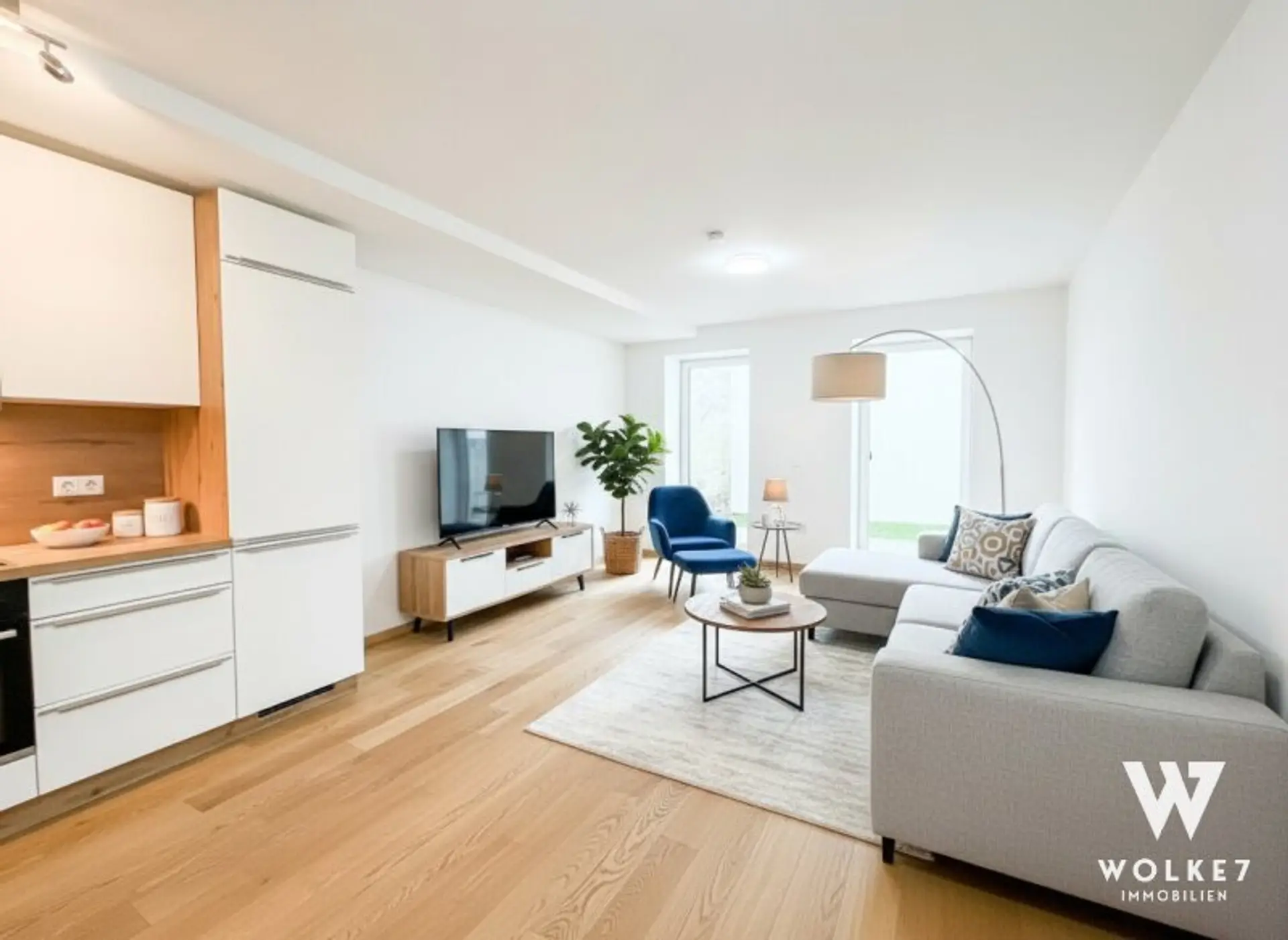 Die Wohnung präsentiert sich in ausgezeichnetem Zustand mit hochwertiger Ausstattung – geölter Eichenparkett, Fußbodenheizung via Luftwärmepumpe, ein ca. 14 m² großer Eigengarten sowie ein Terrassenausgang direkt vom Schlaf-/Kinderzimmer runden das Angebot ab.