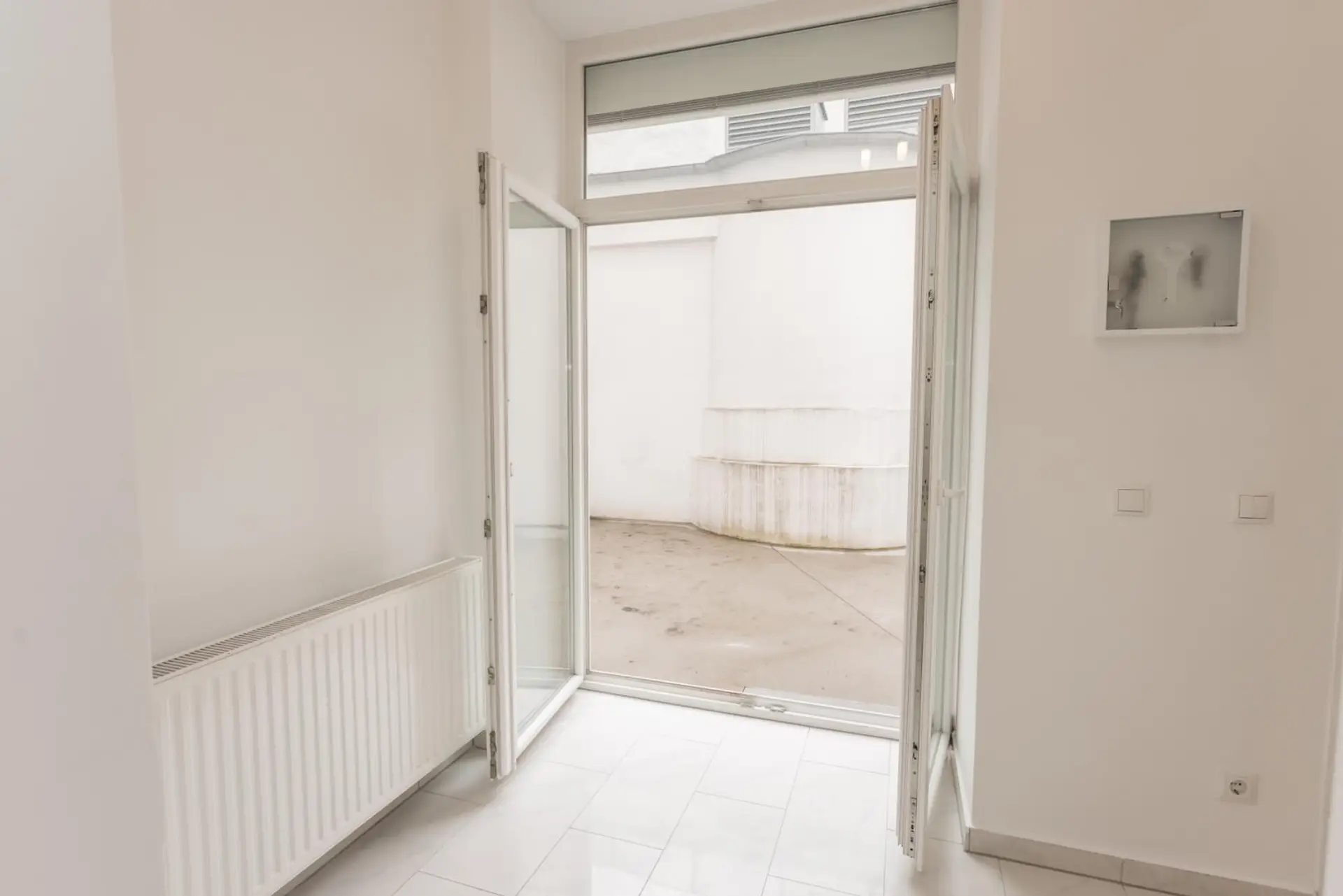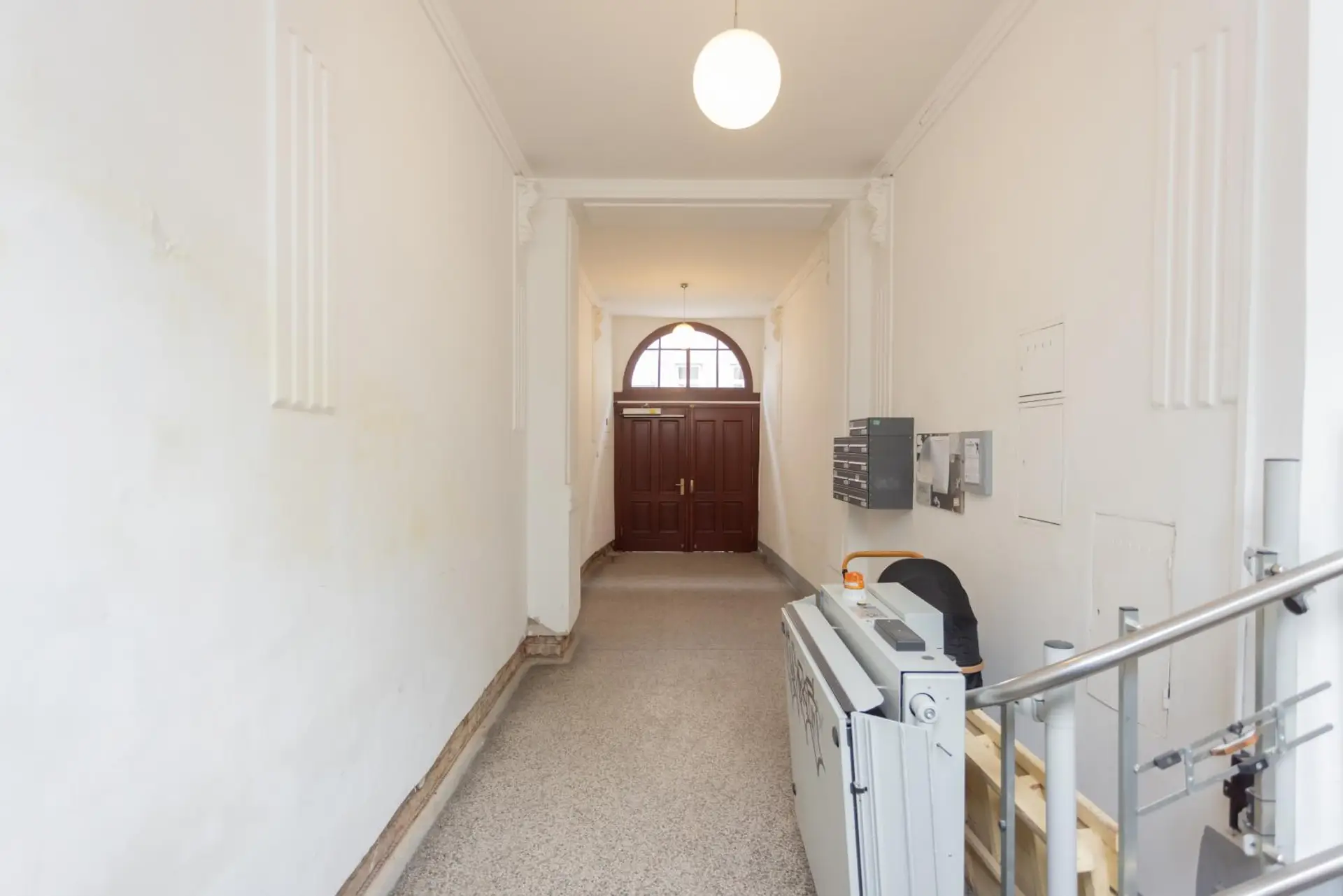 Ein besonderer Vorteil ist die barrierearme Erreichbarkeit: Durch eine kleine Aufzugstreppe ist die Wohnung komfortabel zugänglich und bietet somit auch für Patienten oder Kunden eine angenehme Eintrittssituation.