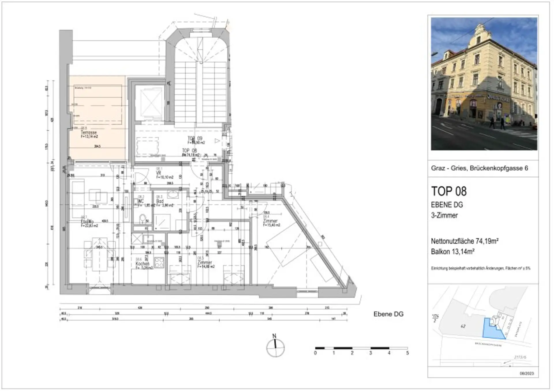 Die sanierte Wohnung TOP 8 überzeugt mit einer durchdachten Raumaufteilung, viel Platz und einer großzügigen Terrasse. Auf rund 78,53 m² Wohnfläche und 13,14 m² Terrasse bietet sie komfortables Wohnen in urbaner Lage.