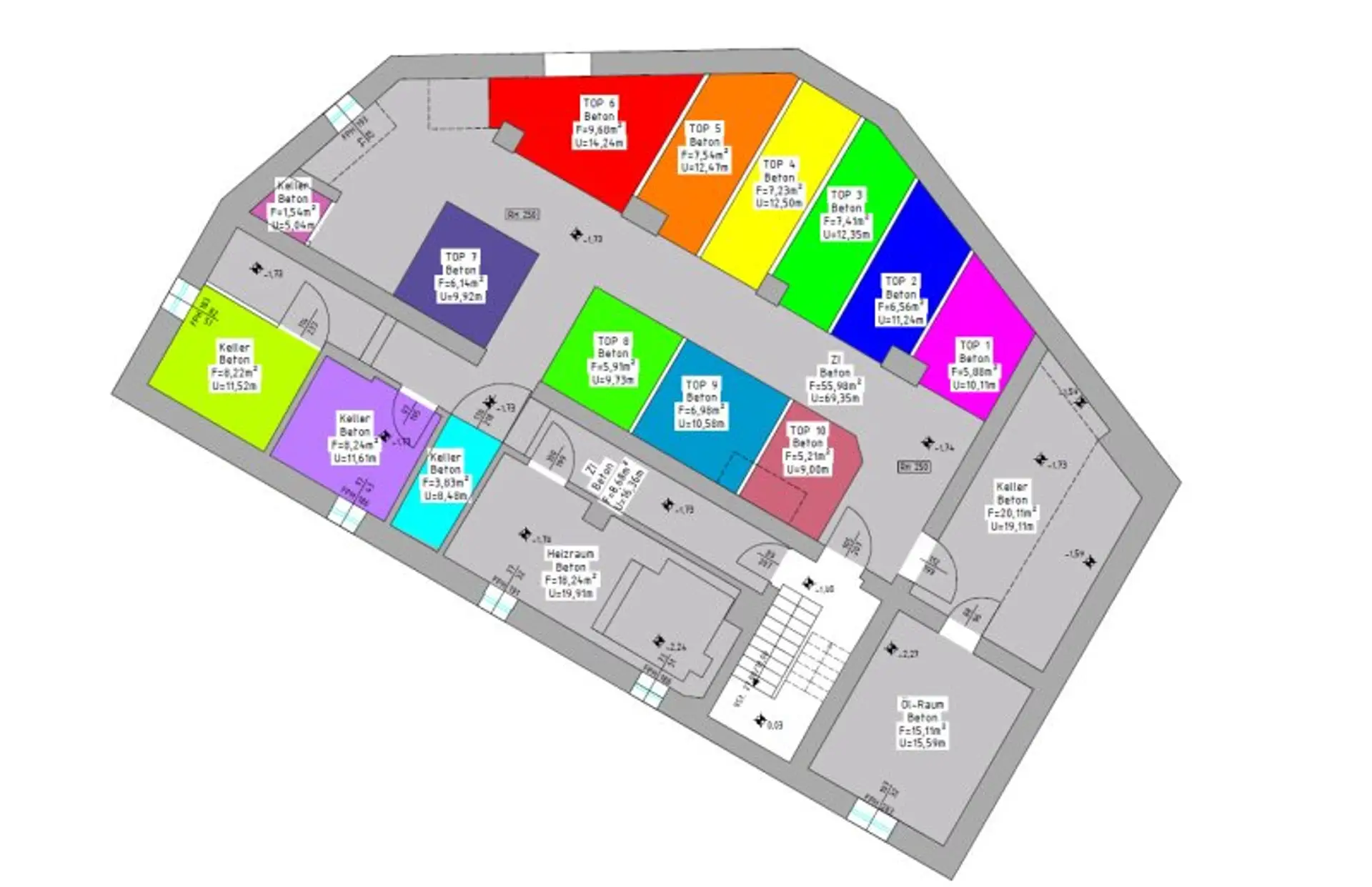 KG: 211,49m² (jede Wohnung besitzt ein eigenes Abteil)