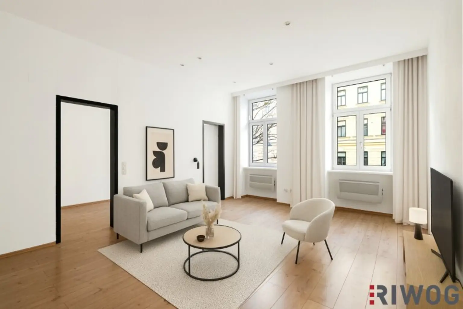 Zum Verkauf gelangt eine entzückende 2 Zimmer Altbauwohnung mit einer sehr großzügigen Raumaufteilung. Sie befindet sich in einem gepflegten Wohnhaus mit schöner gegliederter Fassade im Mezzanin (1. Etage) mit Lift und ist nach Westen ausgerichtet.