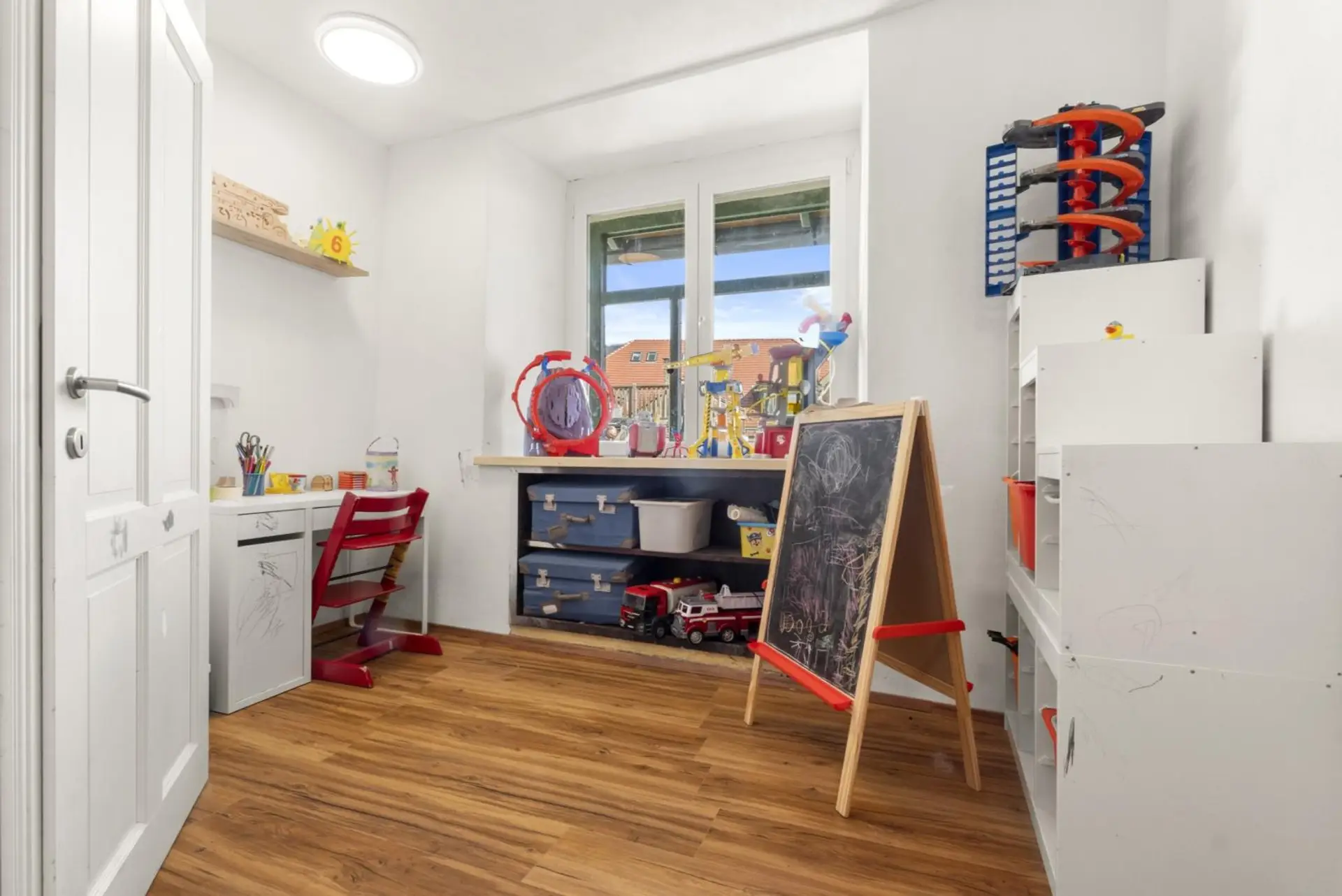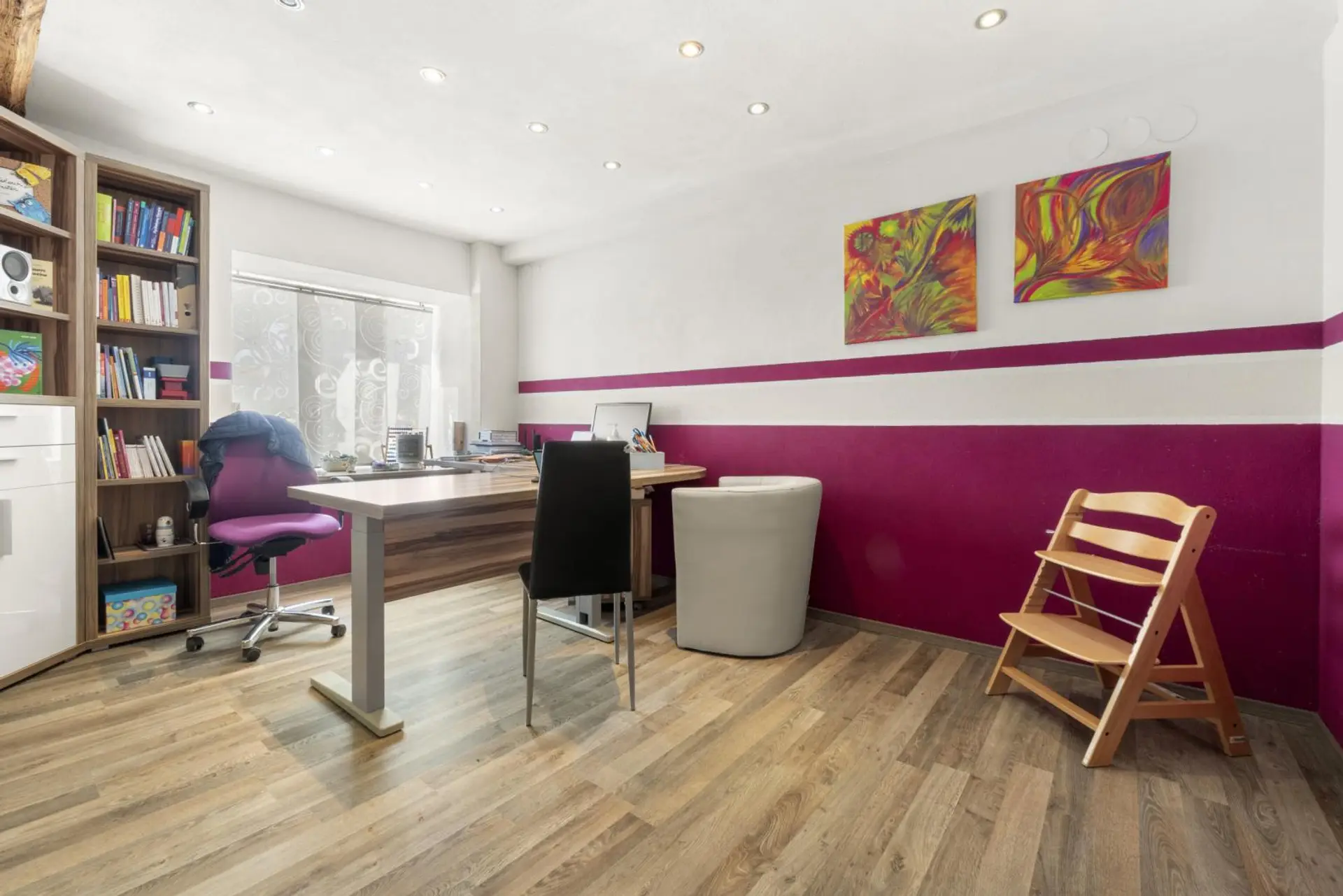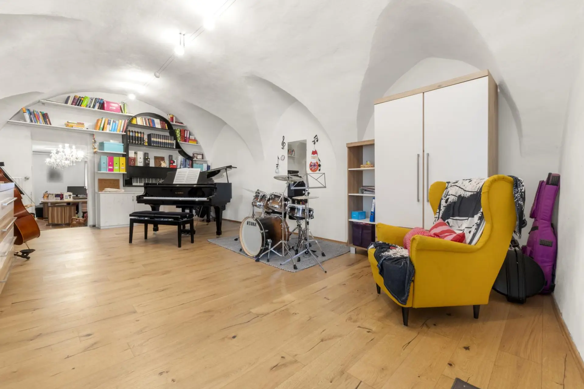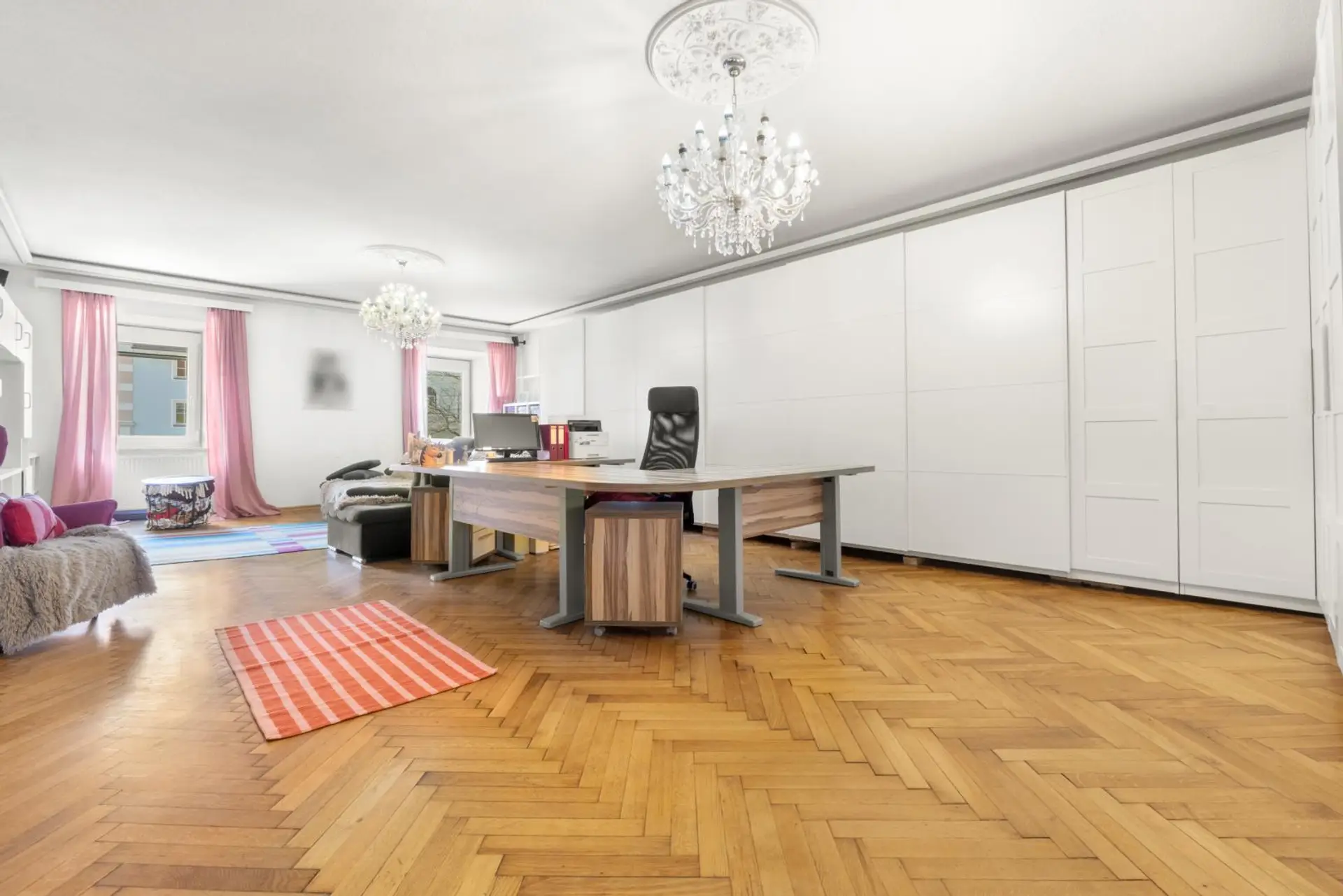 Das 2023 sanierte 1. Obergeschoss mit 7,5 Zimmer auf ca. 309,55 m² eignet sich für private Wohnzwecke.