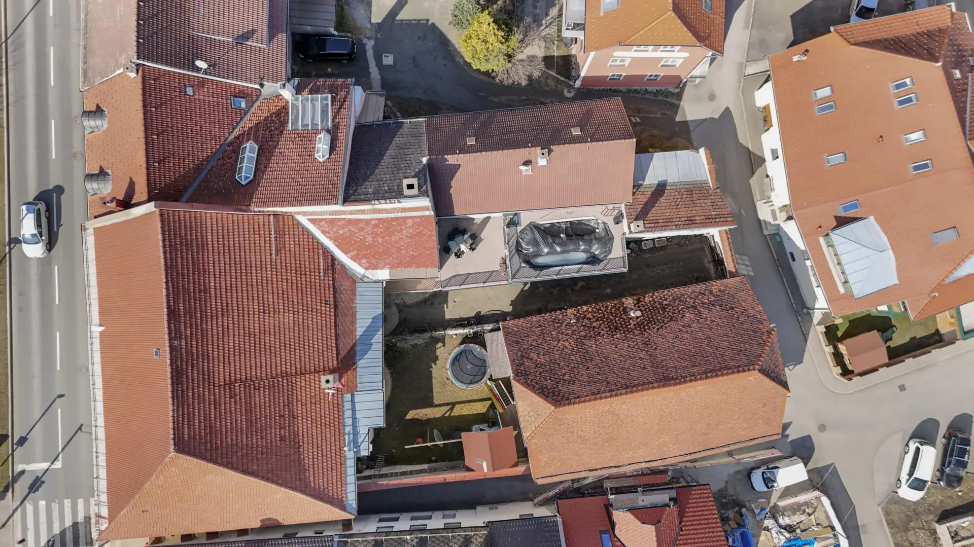 Zusätzliche Fläche bietet außerdem das Nebengebäude. Es gibt drei Abstellplätze im Innenhof, die zur Immobilie gehören.