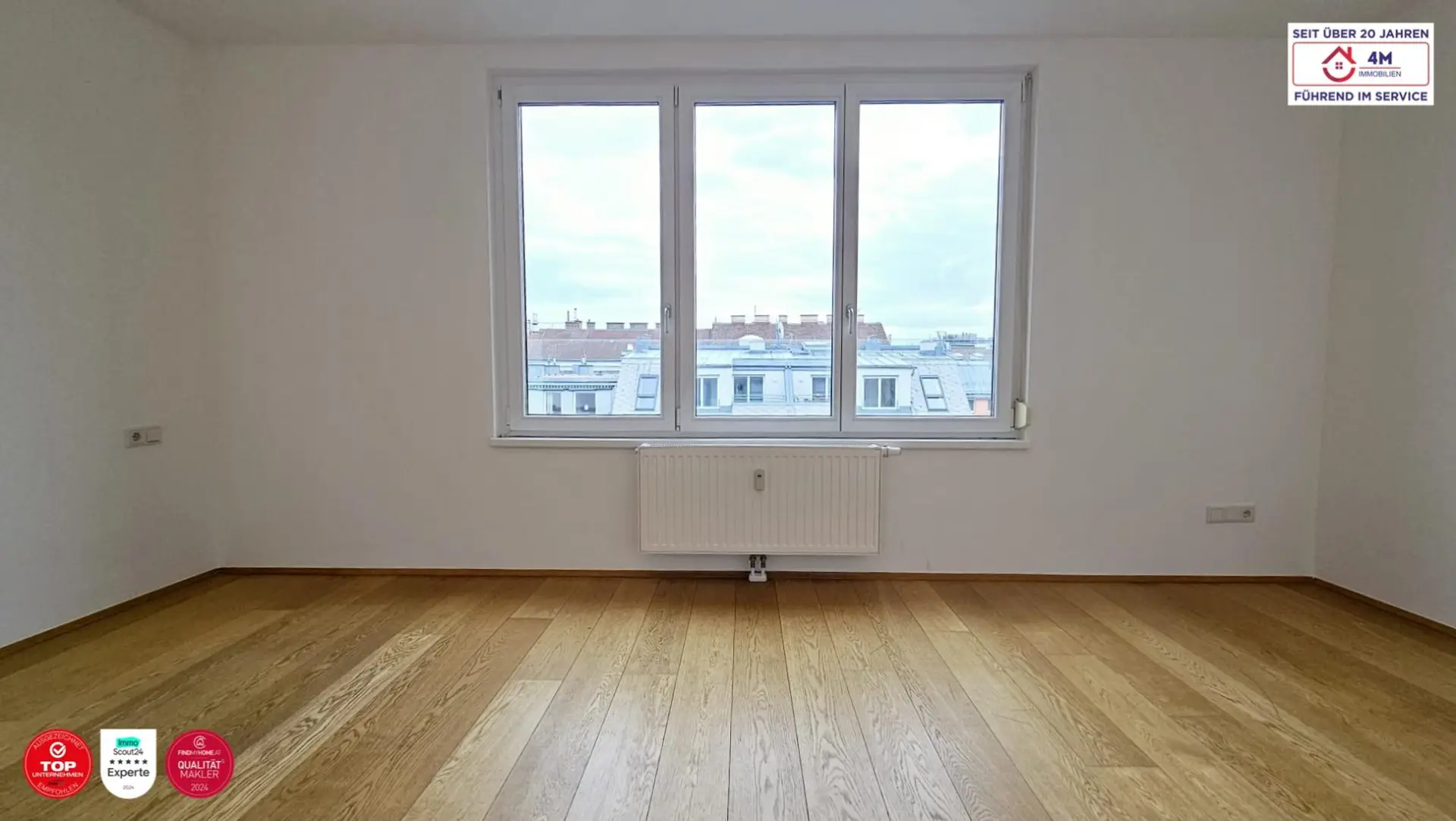 In einem sehr gepflegten und 2007 errichteten Neubau, in sehr zentraler Lage nahe der Schmelz, ist diese hochwertige ca. 92 m² große 3 Zimmer DG - Wohnung mit einer ca. 7m² großen Terrasse situiert.