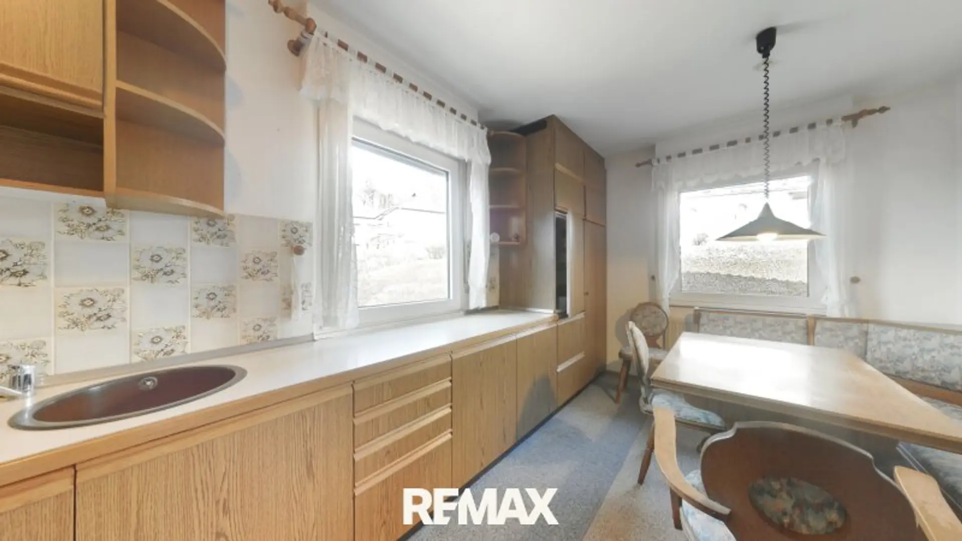 Mit einer Wohnfläche von ca. 98 m² verteilen sich drei gut geschnittene Zimmer auf einer Ebene. Der helle Wohn- und Essbereich bildet das Herzstück des Hauses und ermöglicht einen direkten Zugang zum Balkon, zwei weitere Zimmer zur individuellen Nutzung (Schlafen, Büro, Gäste), Küche, Badezimmer. Das Zenker-Haus ist voll unterkellert mit einem Kellerstüberl, Werkstätte, Garage und weiteren Zimmern.