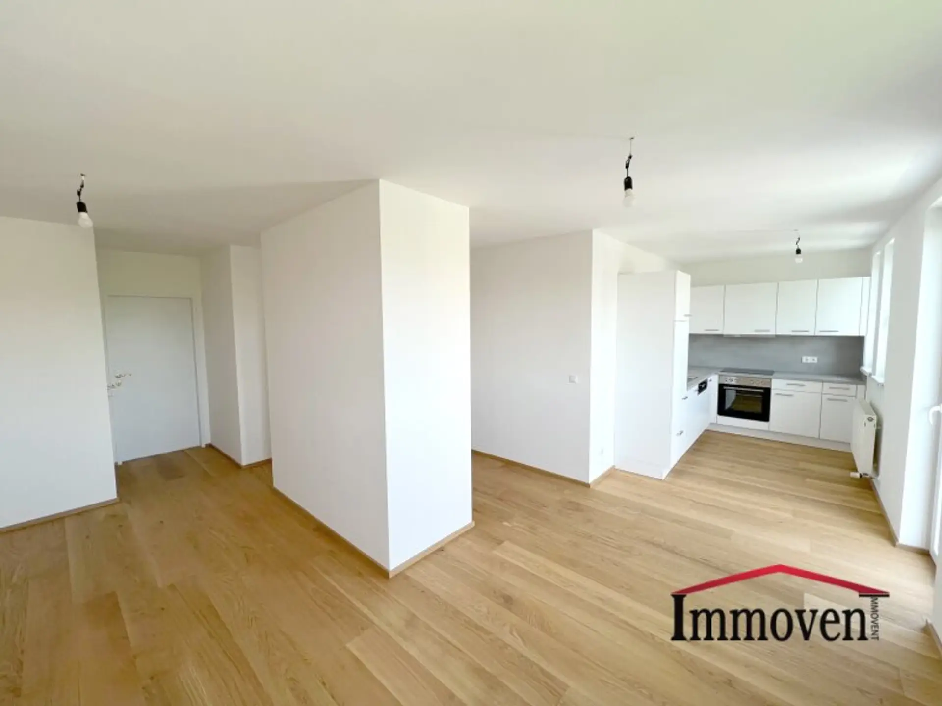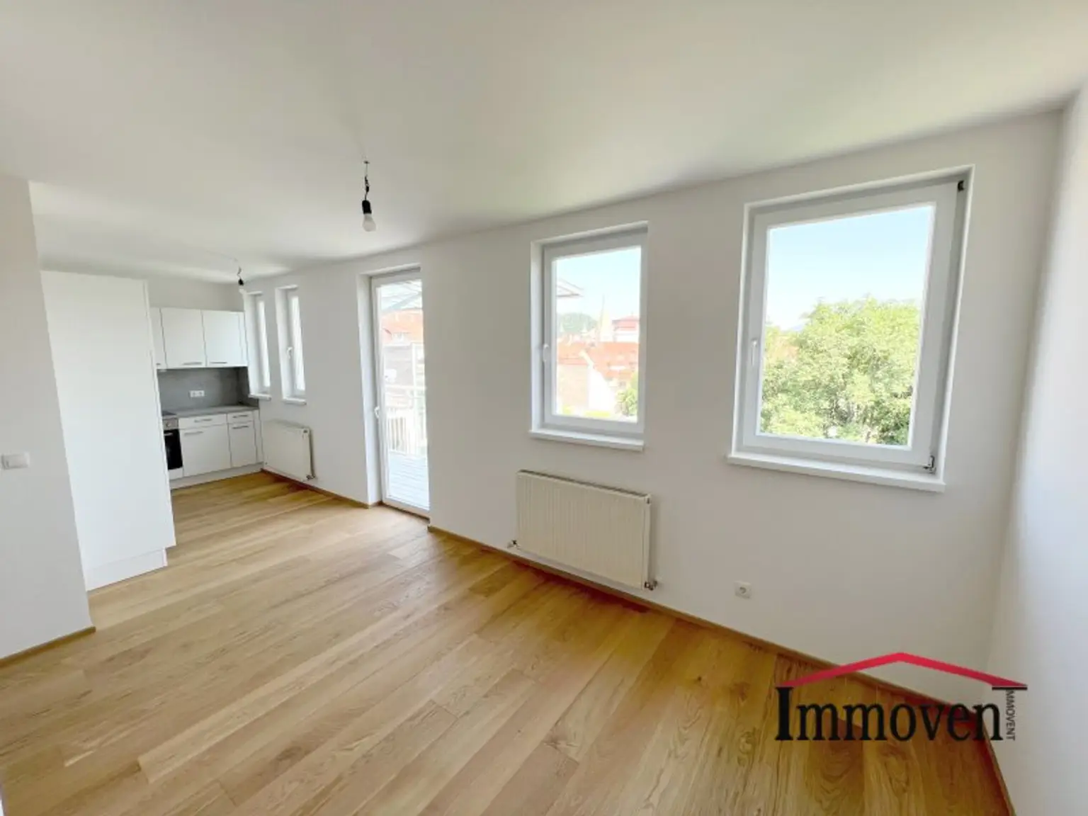 + Wohnraum mit integrierter Küche und Zugang auf den Balkon