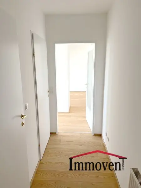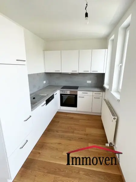Die hellen freundlichen Wohnräume sind mit schönem Holzboden versehen und wirken dadurch warm und einladend. Die im Wohnraum integrierte Küche ist modern und funktional ausgestattet. Vom Wohnzimmer aus gelangt man auf den Balkon, auf dem man es sich durchaus bequem machen kann.