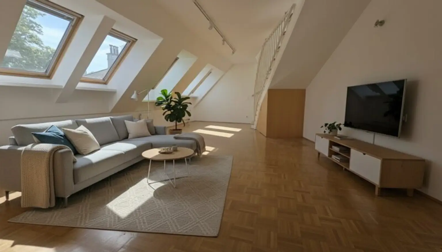 Die südseitige Ausrichtung sorgt für lichtdurchflutete Räume, während die Wohnung trotz zentraler Lage angenehm ruhig ist. Der offene Wohnbereich mit teilintegrierter Küche, zwei Badezimmer, zwei WC sowie die rund 40 m² große, uneinsehbare Dachterrasse schaffen ein hochwertiges Wohngefühl. Im Dachgeschoss gelegen und bequem per Lift erreichbar. Gepflegter Zustand. Attraktiv auch für Anleger dank freiem Mietzins.