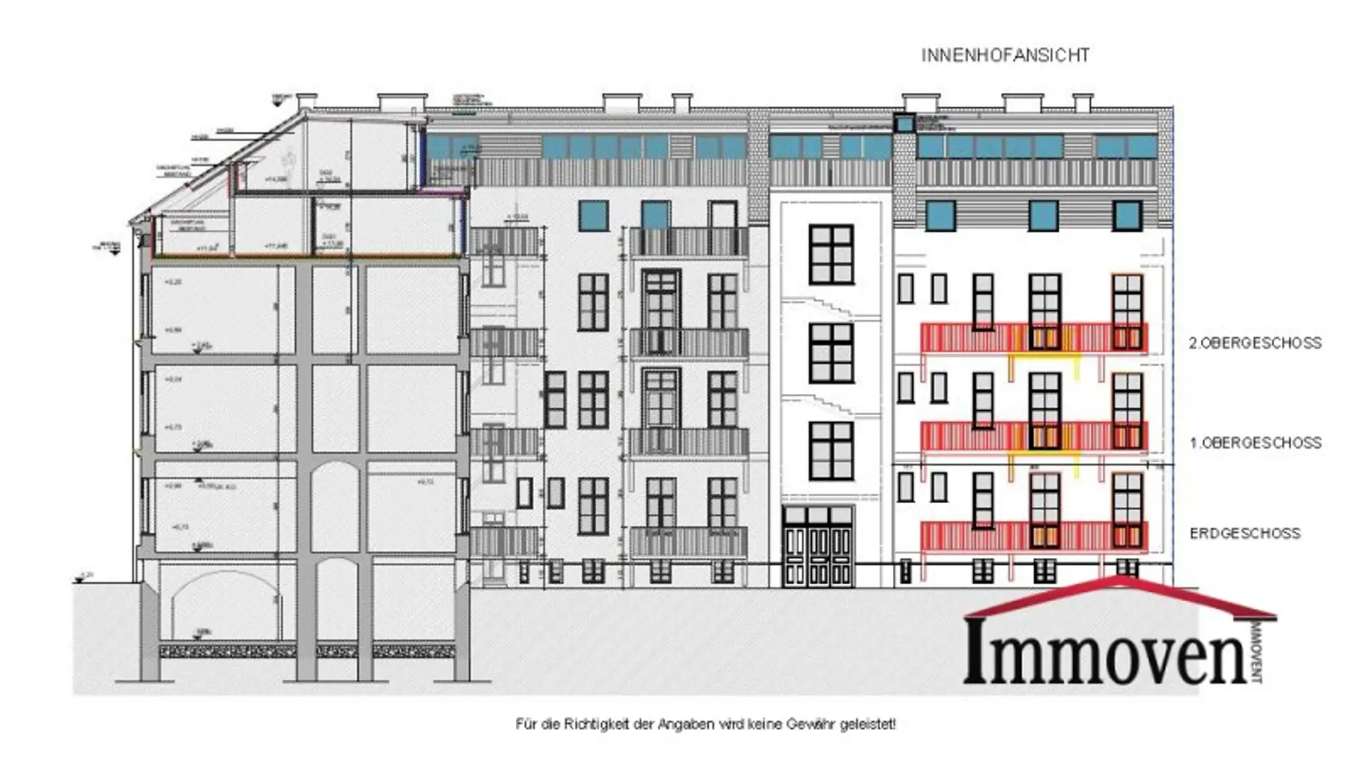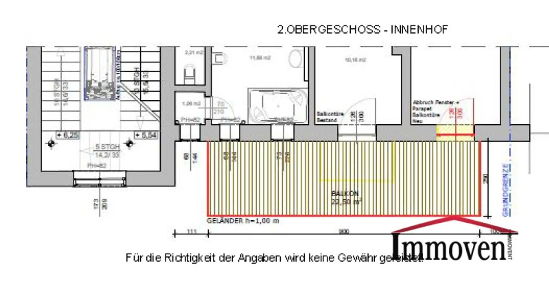 Es besteht die Möglichkeit, jenen Balkon (Küche) der zur Innenhofseite ausgerichtet ist, auf eigene Kosten zu vergrößern (siehe Plan - Innenhofansicht). Eine von seitens der Baubehörde, genehmigte Baubewilligung liegt bereits vor.