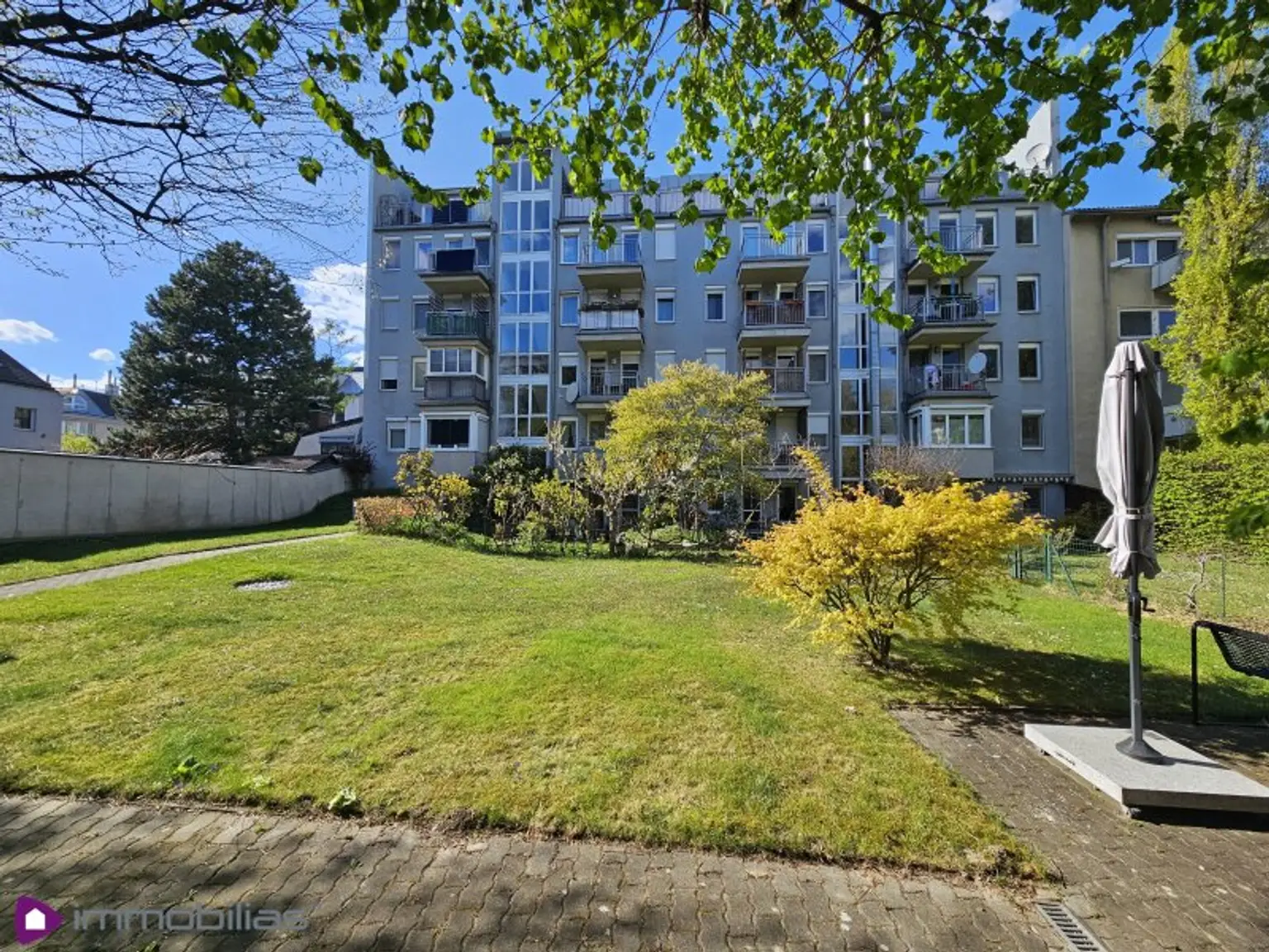 Der hauseigene Gartenbereich kann von den Bewohnern der Liegenschaft gemeinsam genutzt werden.