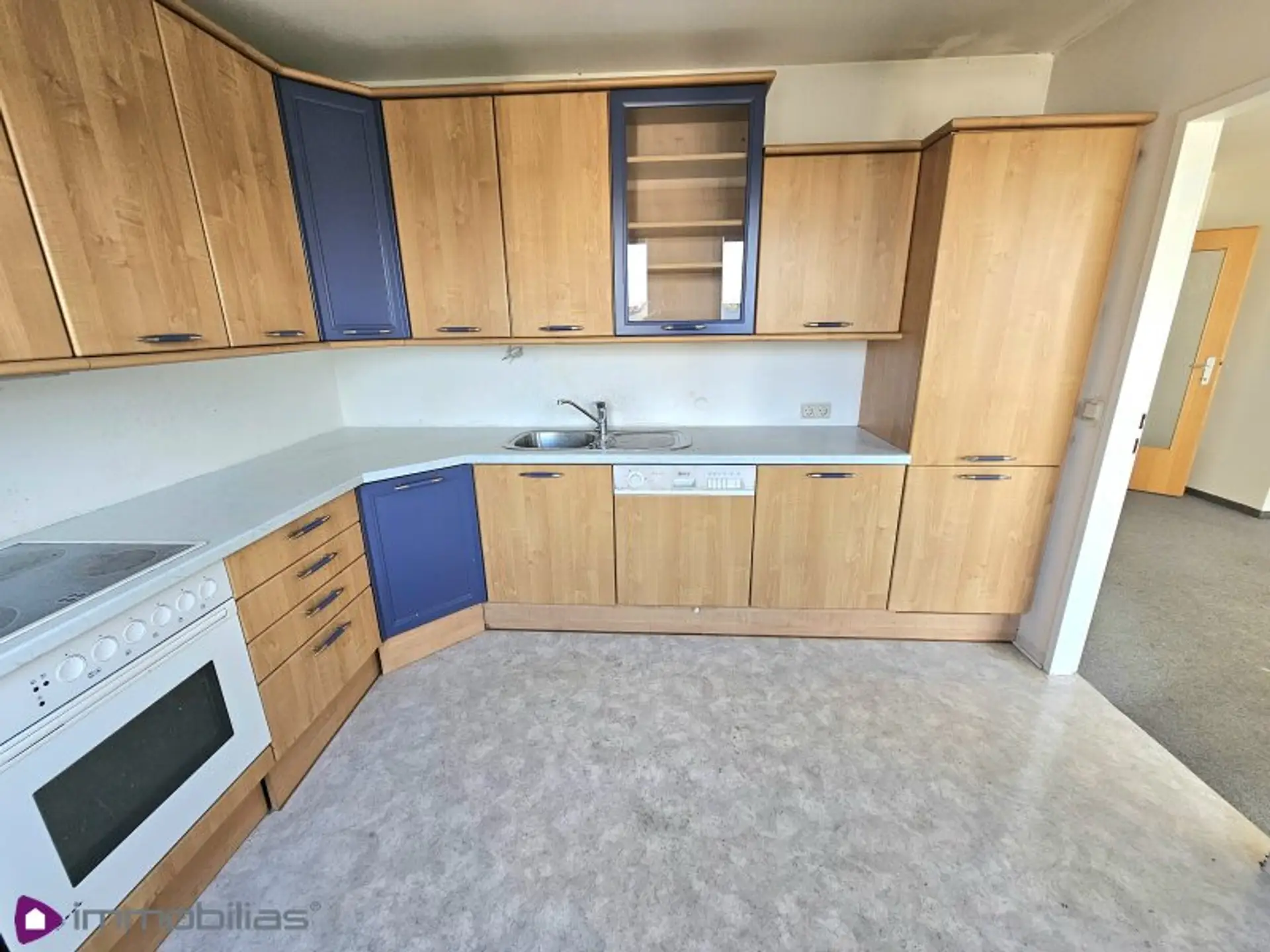Gasetagenheizung, Einbauküche mit allen Geräten vorhanden; in den Räumen ist aktuell ein grauer Teppich verklebt- dieser kann als Untergrund für die Verlegung eines Parkett- oder Laminatboden genutzt werden, trockenes (uneinsichtiges) Kellerabteil mit eigenem Stromanschluss, Waschküche;
