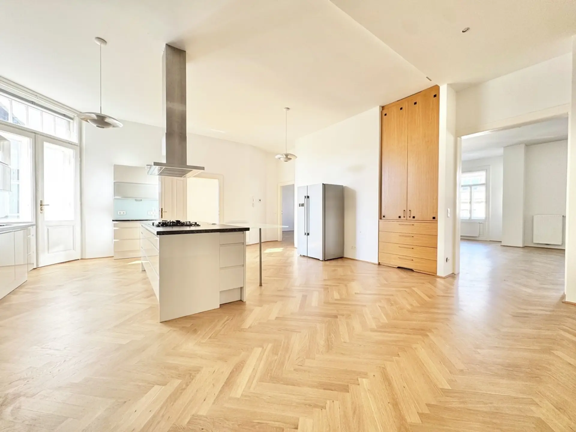 191m² große, helle 4-Zimmerwohnung befindet sich im 5.Stock (mit Lift) eines sehr gepflegten Wohnhauses in einer der begehrtesten Lage Wiens.